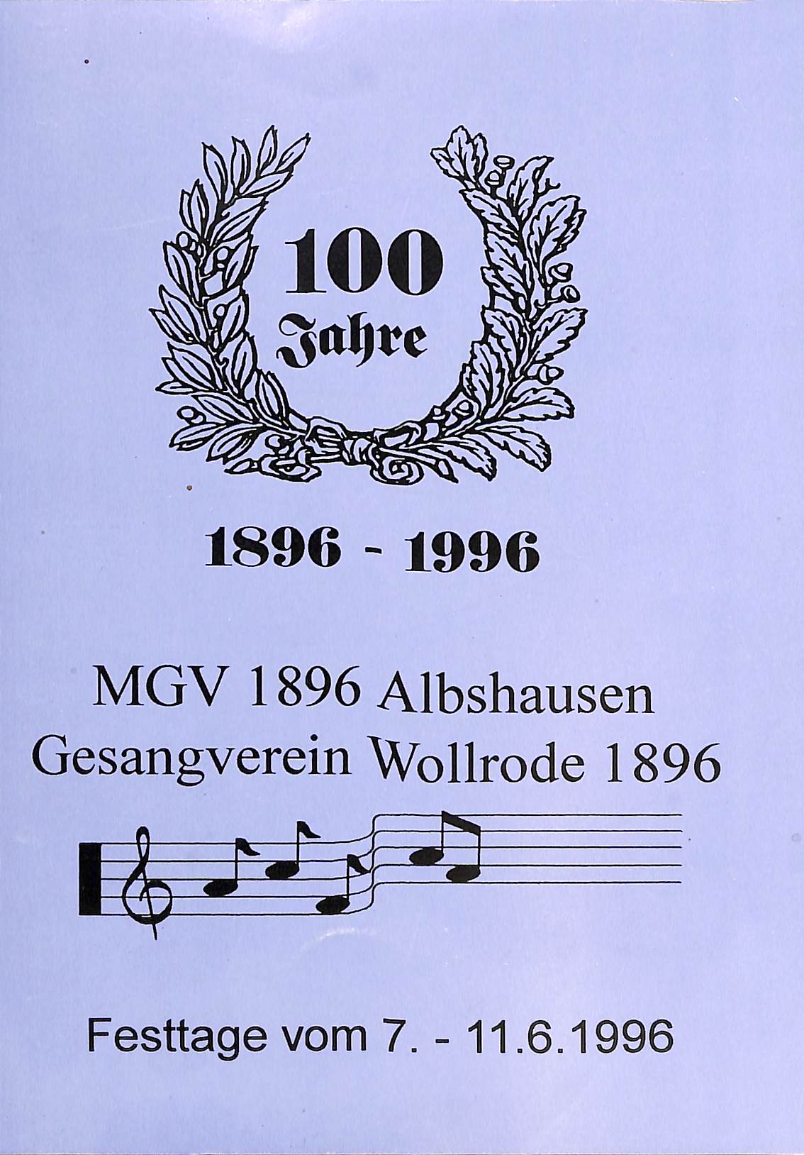 Heft zur 100 Jahrfeier des Gesangverein MGV 1896 Albshausen Wollrode
