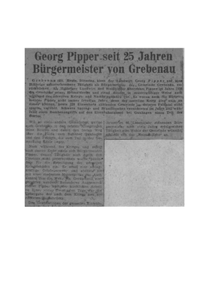Artikel im Heimat Echo 1955 anlässlich des 60. Geburtstags von Georg Pipper, der seit 25 Jahren Bürgermeister von Grebenau ist.