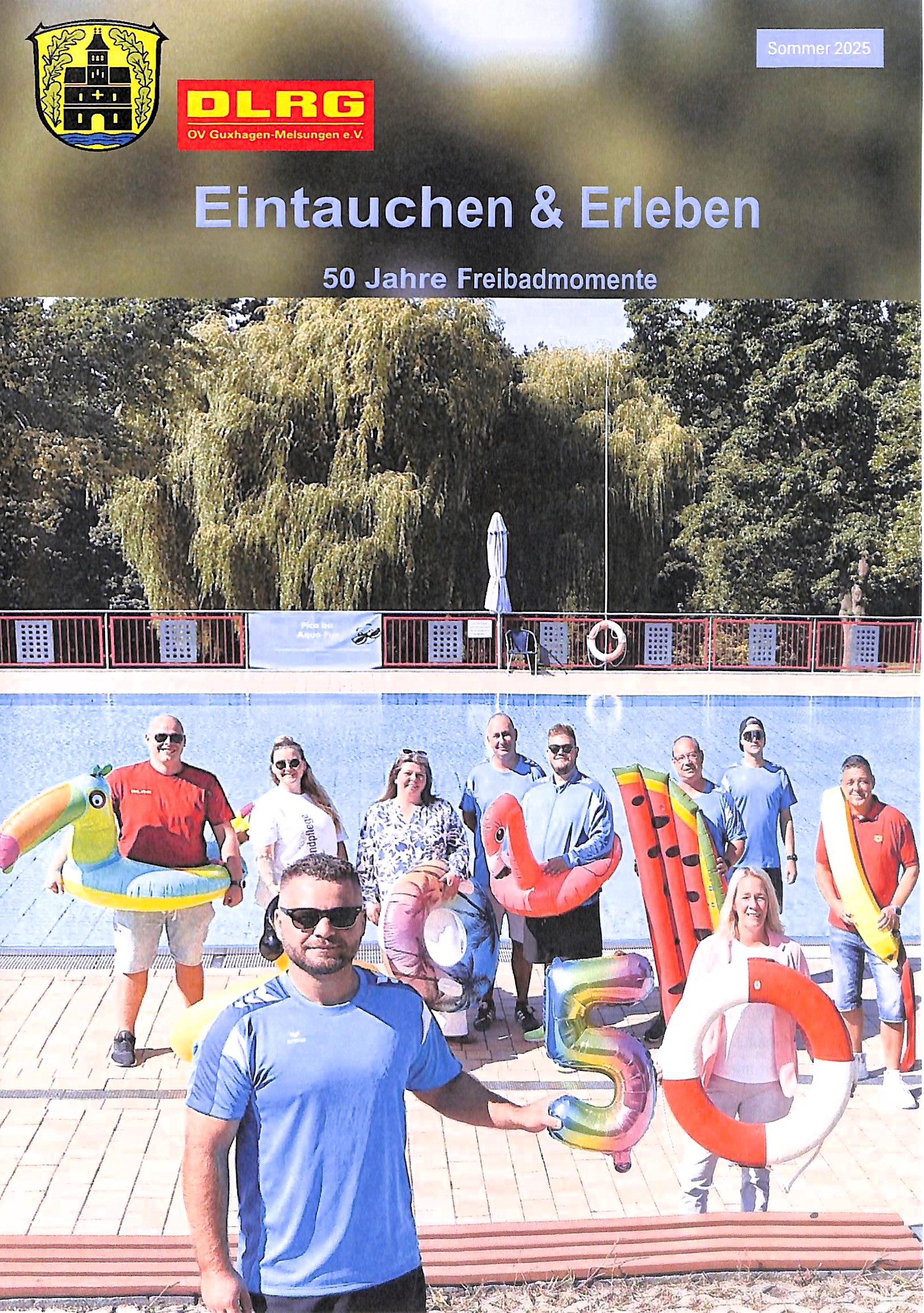 In der Woche vom 25. bis zum 31. August 2025 wurde das 50 jährige Jubiläum mit vielen Veranstaltungen gefeiert. Hierzu brachte die Gemeinde Guxhagen und der DLRG Ortsverband dies Zeitschrift heraus.