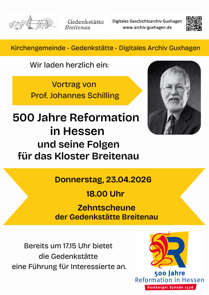 Ein Vortrag von Prof. Johannes Schilling. Zu dem Thema "500 Jahre Reformation in Hessen und seine Folgen für das Kloster Breitenau"