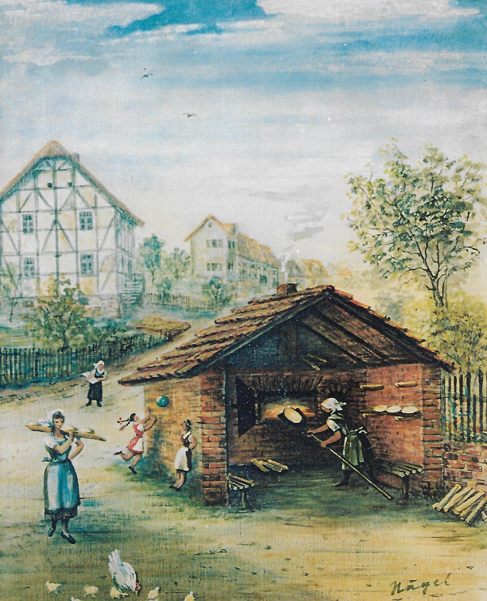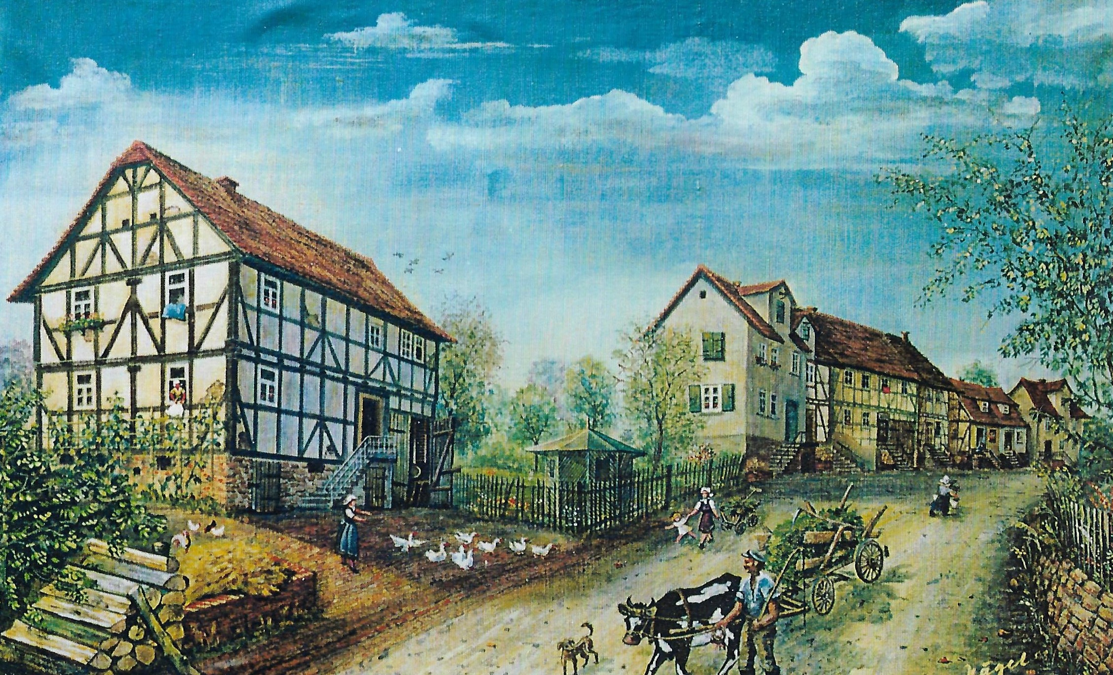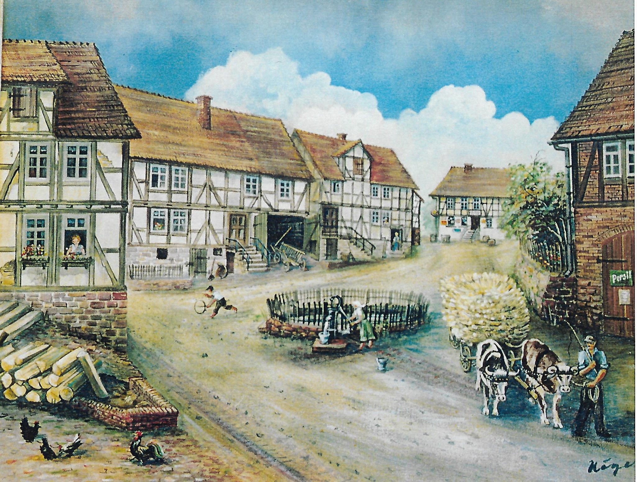 Alte Ellenberger Dorfansicht Gemälde von Karl Nägel.