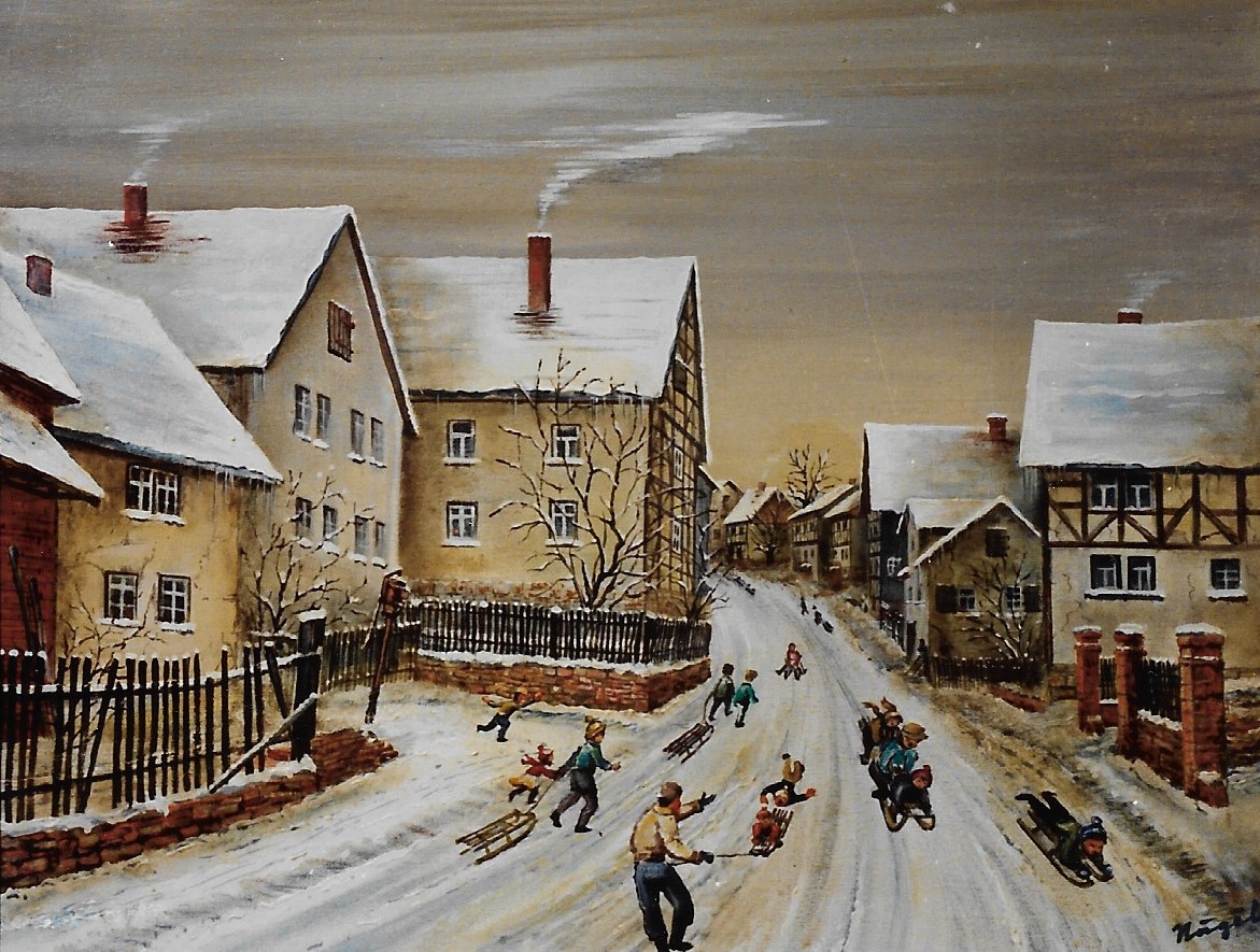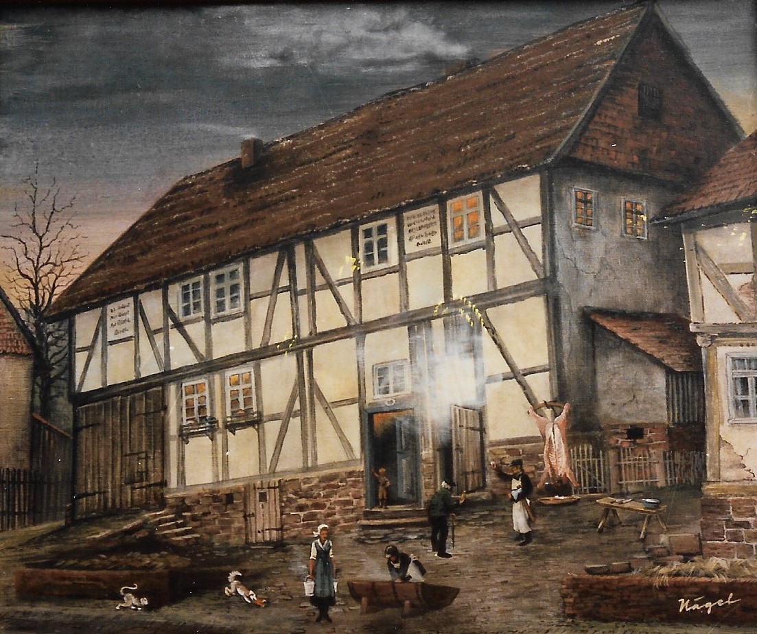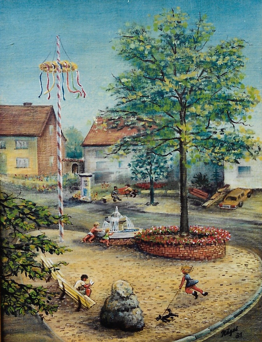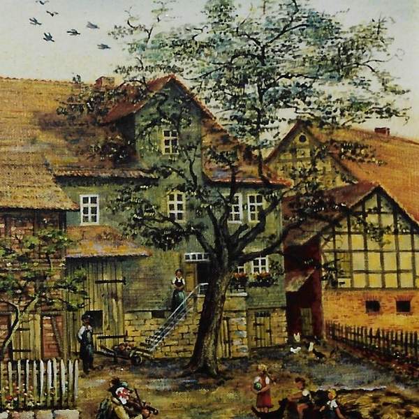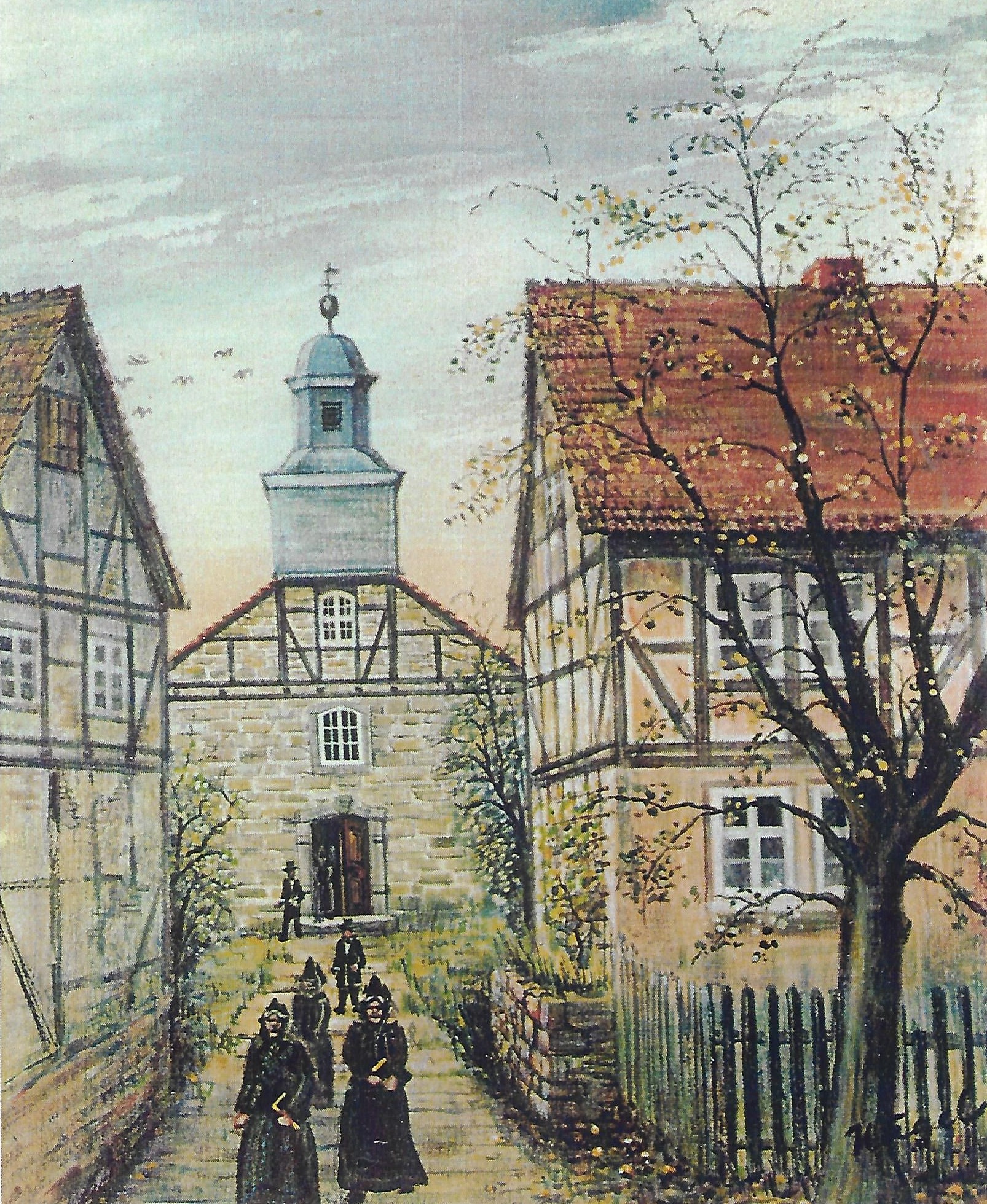 Alte Ellenberger Dorfansicht Gemälde von Karl Nägel.