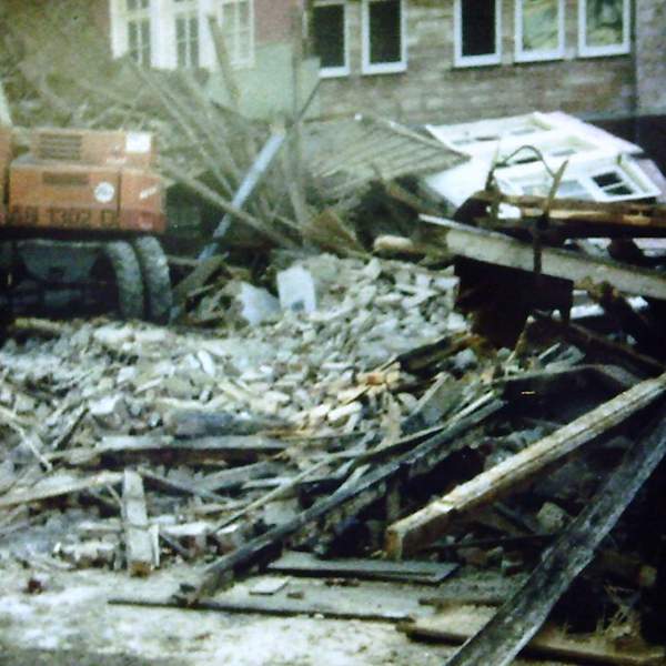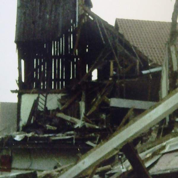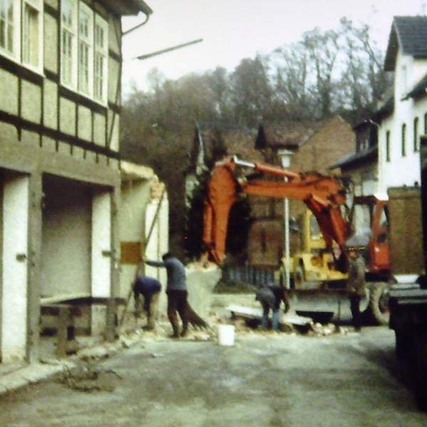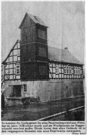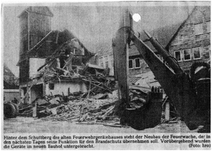 In den Bildern zu Sehen das Alte Feuerwehrgerätehaus, erbaut im Jahre 1938 und den Abriss des Hauses in 1982.