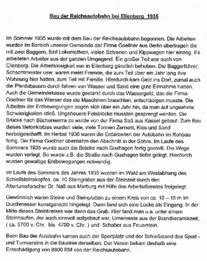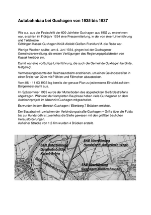 Im Spätsommer 1935 wurde der Mutterboden des abgesteckten Geländestreifens abgetragen. Während der kompletten Bauphase haben viele Guxhagener an dem Autobahnprojekt im Abschnitt Guxhagen mitgearbeitet.