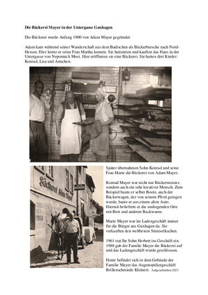 Adam Mayer gründete Sie anfang 1900, er kam während seiner Wanderschaft aus dem Badischen als Bäckerbursche nach Nord-Hessen.