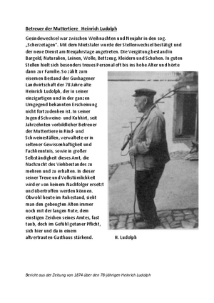 Bericht aus der Zeitung von 1874 über den 78 jährigen Heinrich Ludolph
