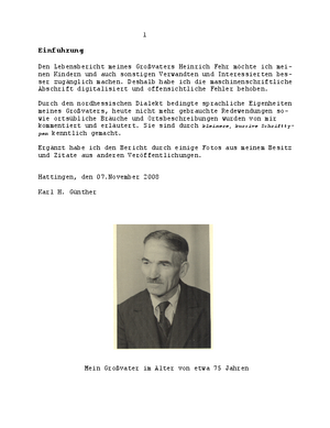 Aufgeschrieben und zur Verfügung gestellt von K.H. Günther Hattingen, Enkel von Heinrich Fehr