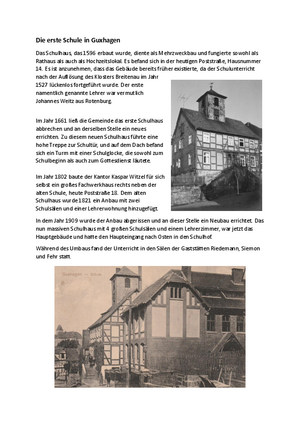 Das Schulhaus, das 1596 erbaut wurde, diente als Mehrzweckbau und fungierte sowohl als Rathaus als auch als Hochzeitslokal.