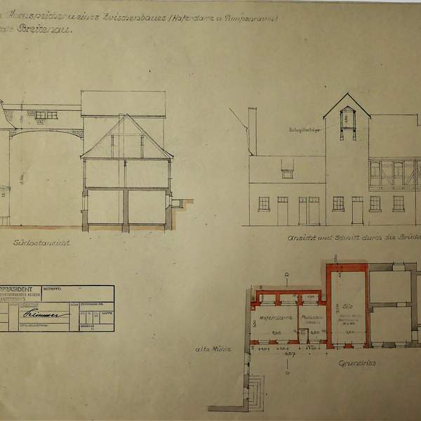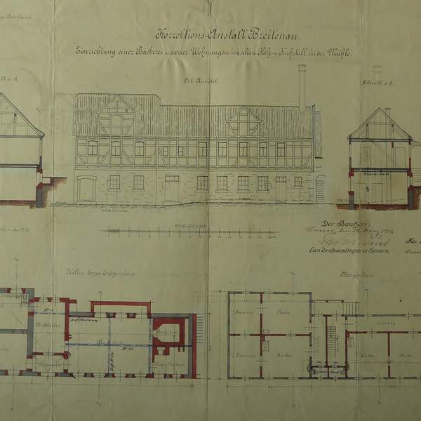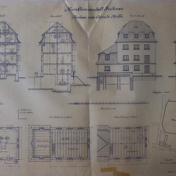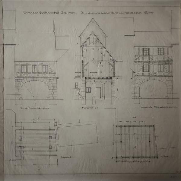 Bleistiftzeichnung u. Aquarelle von Elisabet Schmidt/Sinning, techniche Zeichnungen aus dem Archiv des LWV's.
