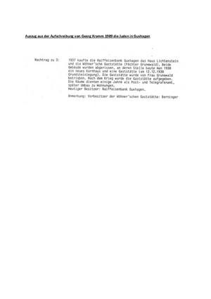und befand sich auf dem Gelände der Raiffeisen Bank. Heute steht an der Stelle das alte Kornhaus mit angebauten Wohnungen. Das Gebäude und das Haus Lichtenstein welches links daneben stand, wurde 1937 abgerissen.