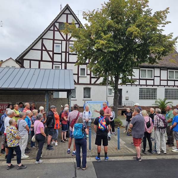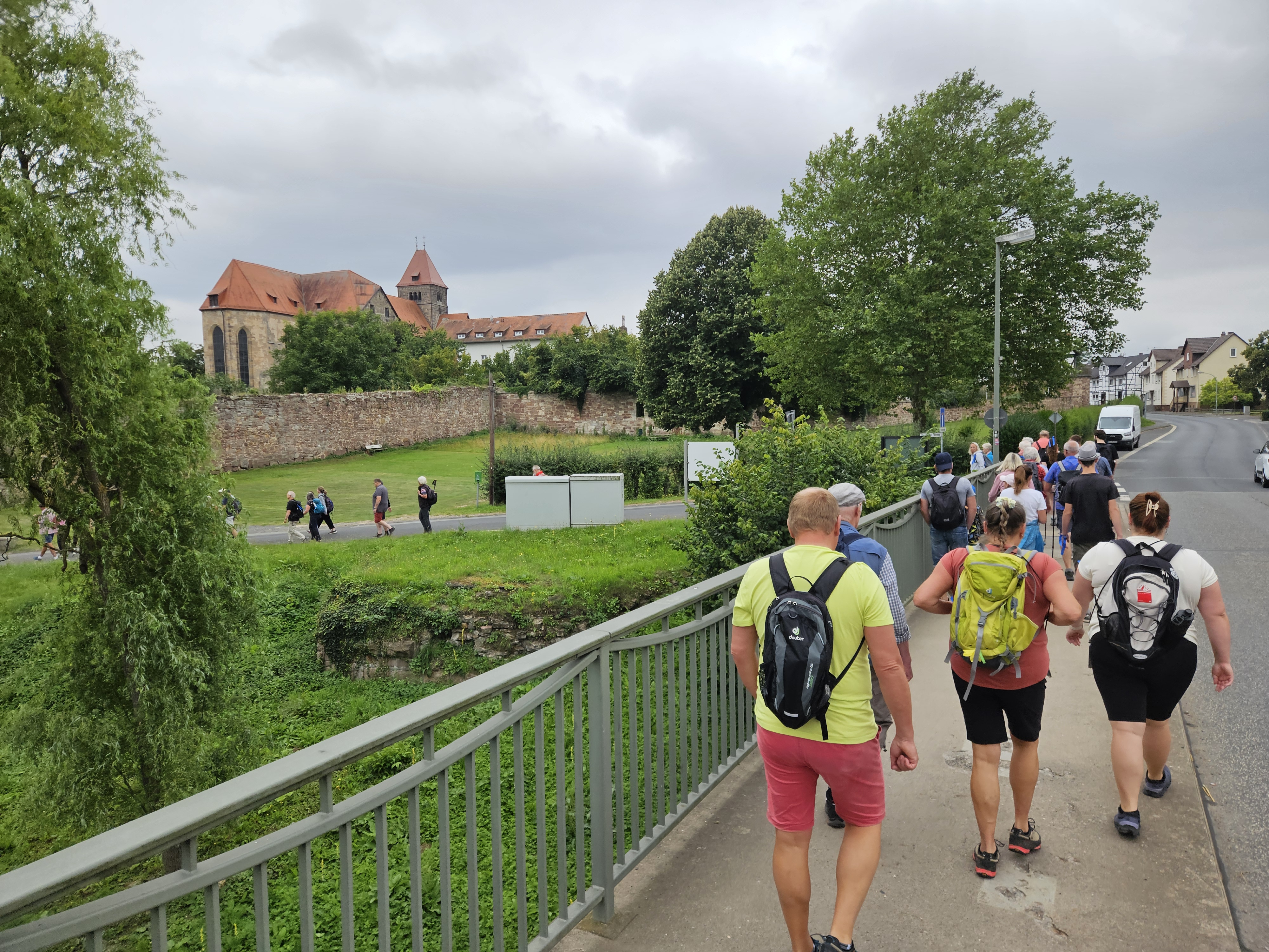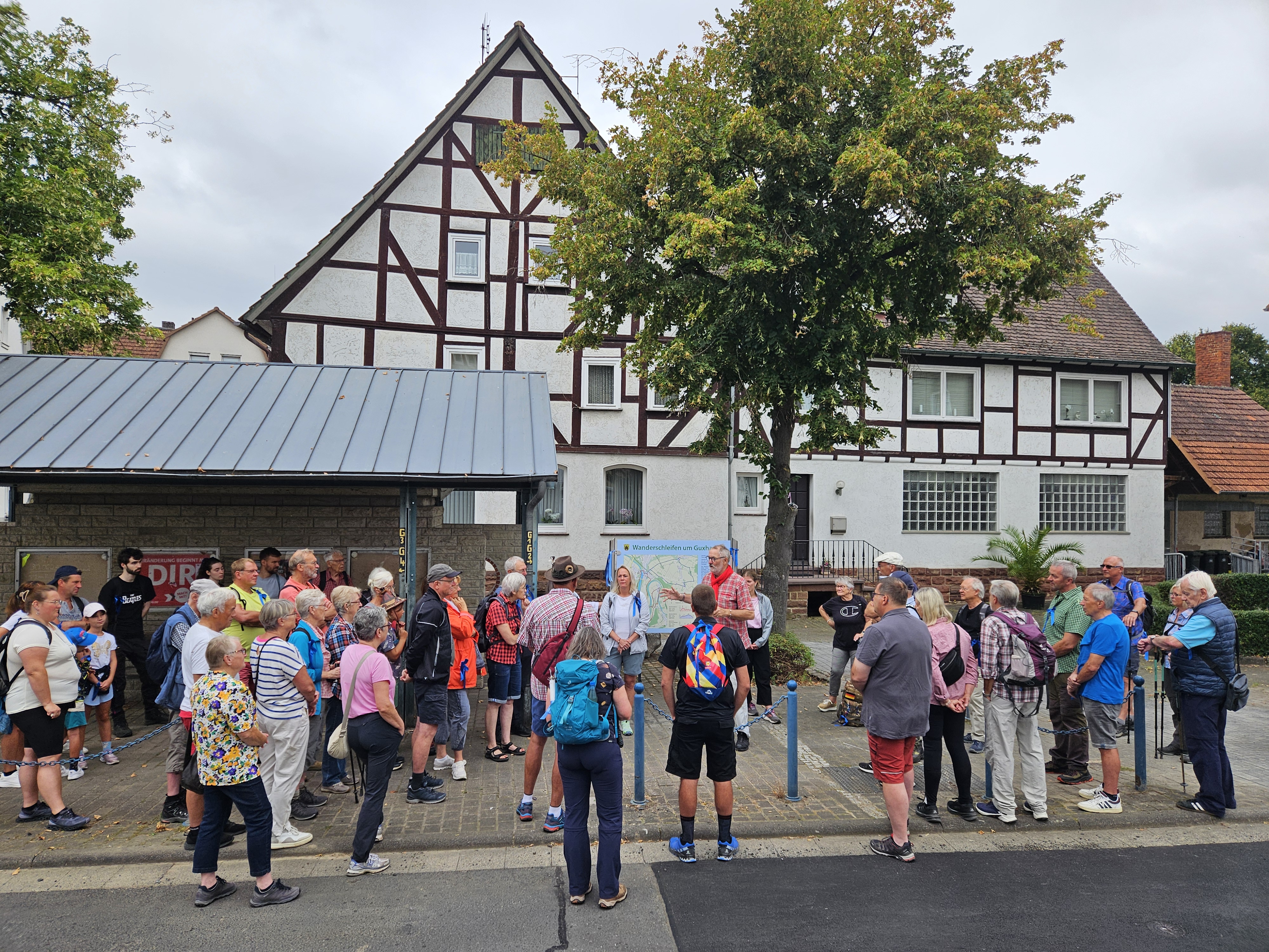 Im Anschluss an die Enthüllung der Wandertafel am Dorfanger von Guxhagen, erwanderten ca. 70 Wanderer die erste Wanderschleife über Ellenberg, Grebenau, Büchenwerra nach Guxhagen.