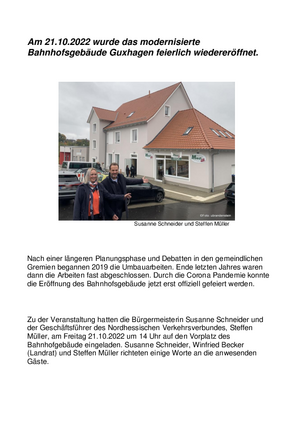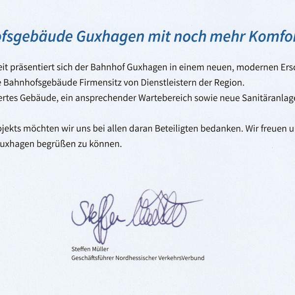 Am 21.10.2022 wurde das modernisierte Bahnhofsgebäude Guxhagen feierlich wiedereröffnet.