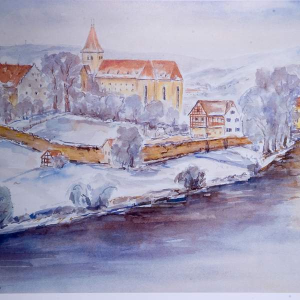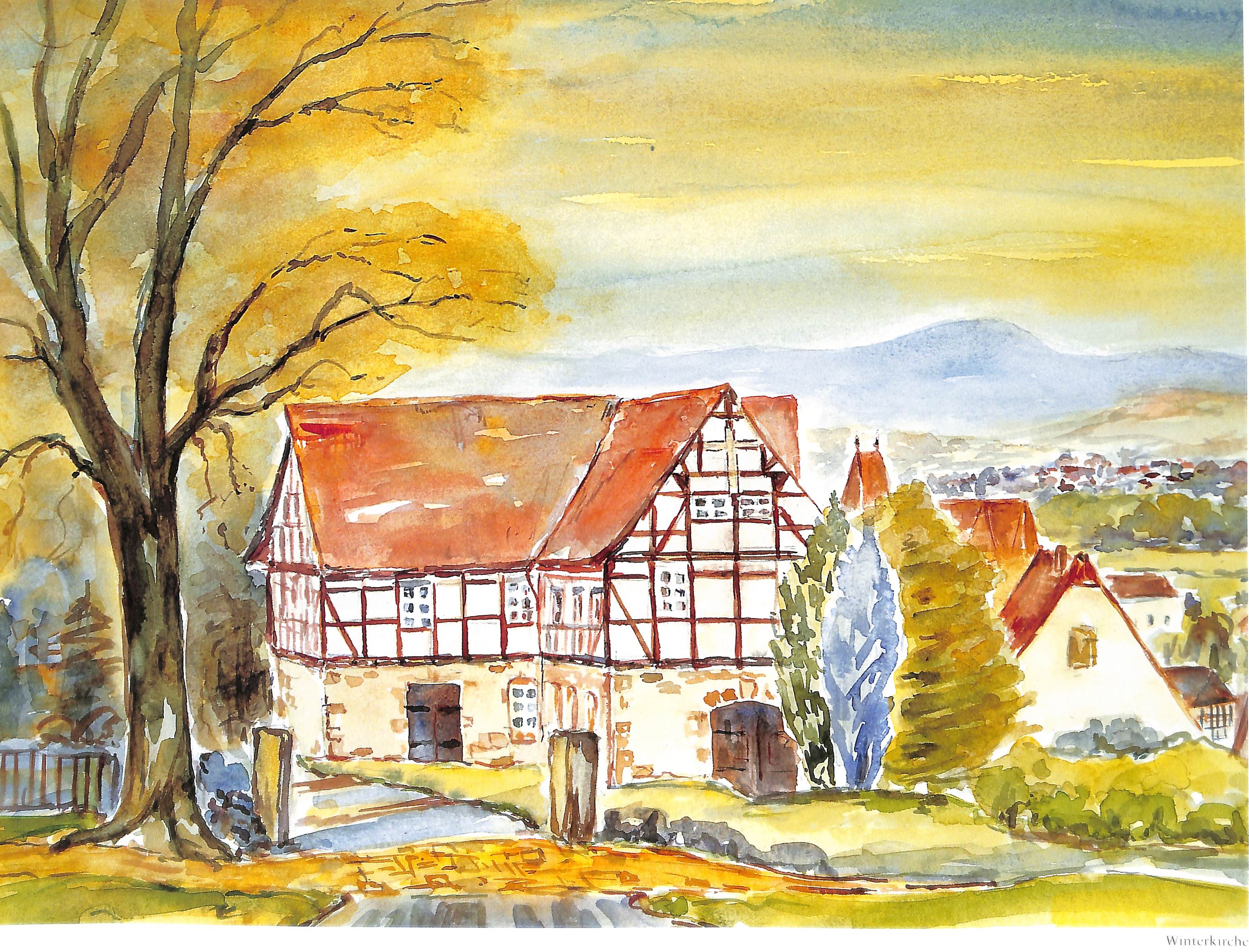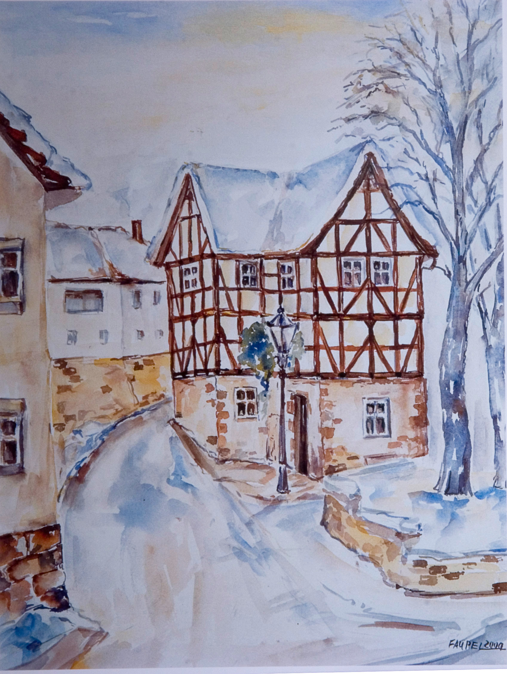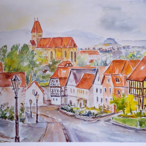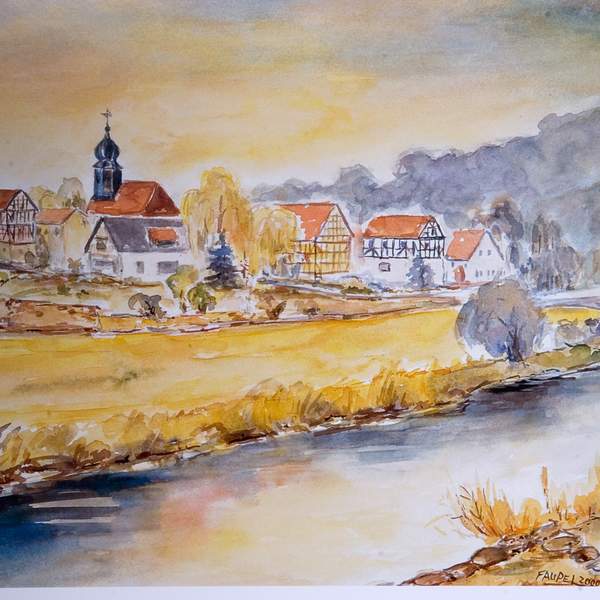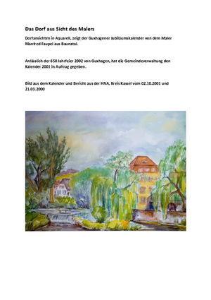Dorfansichten in Aquarell, zeigt der Guxhagener Jubiläumskalender von dem Maler Manfred Faupel aus Baunatal.