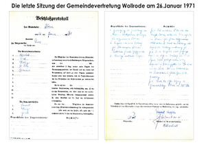 Protokoll der letzten Sitzung der Gemeindevertretung von Wollrode am 26. Januar 1971