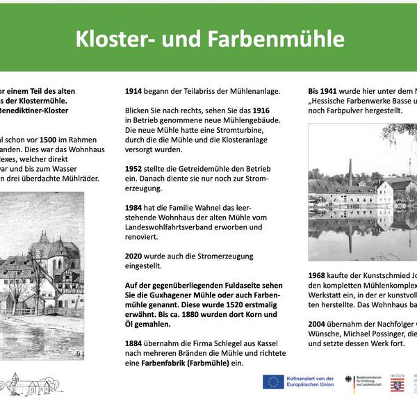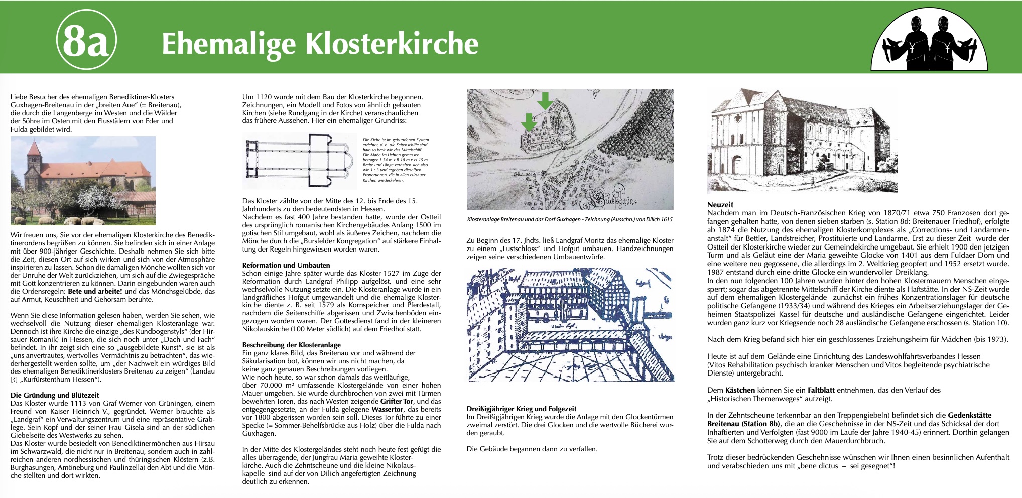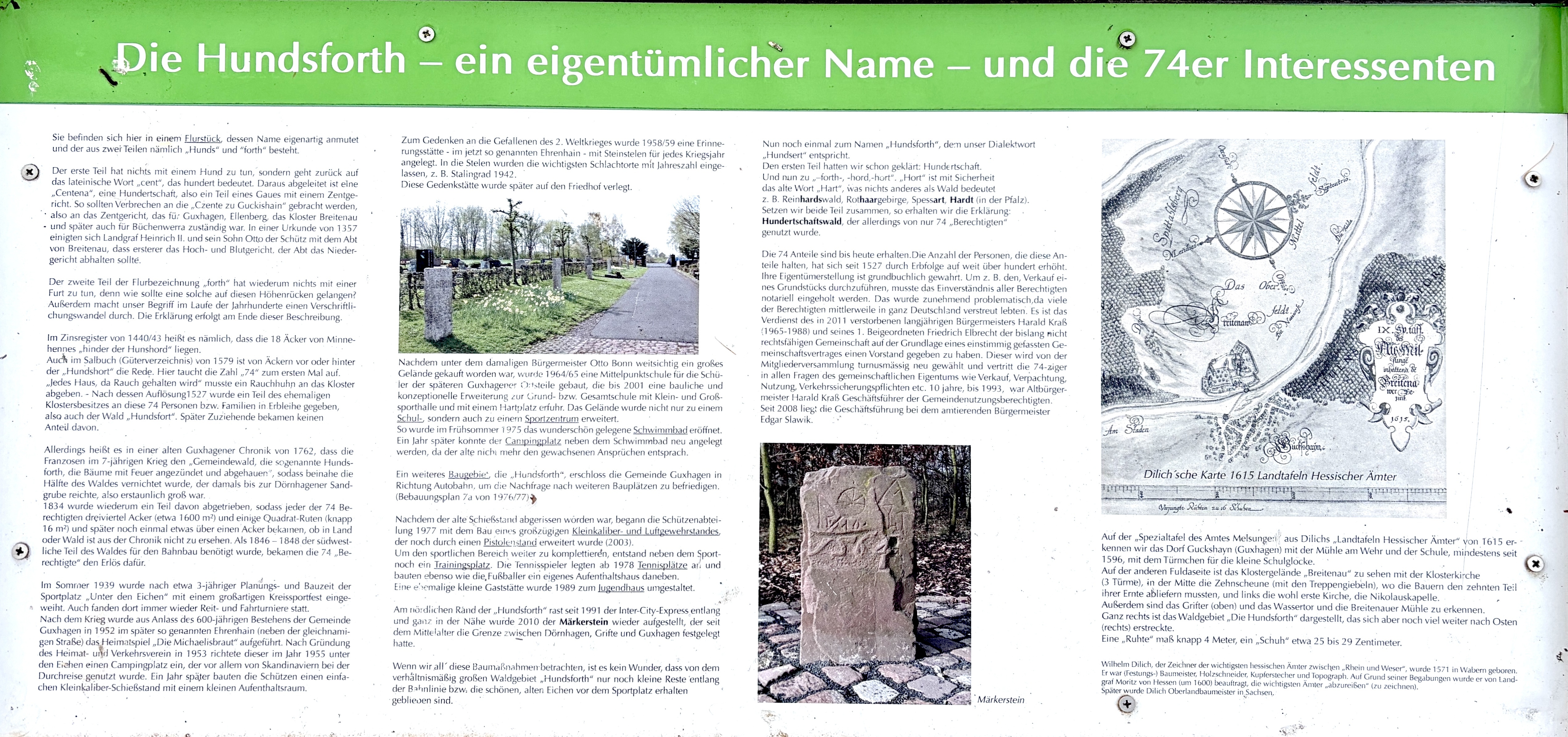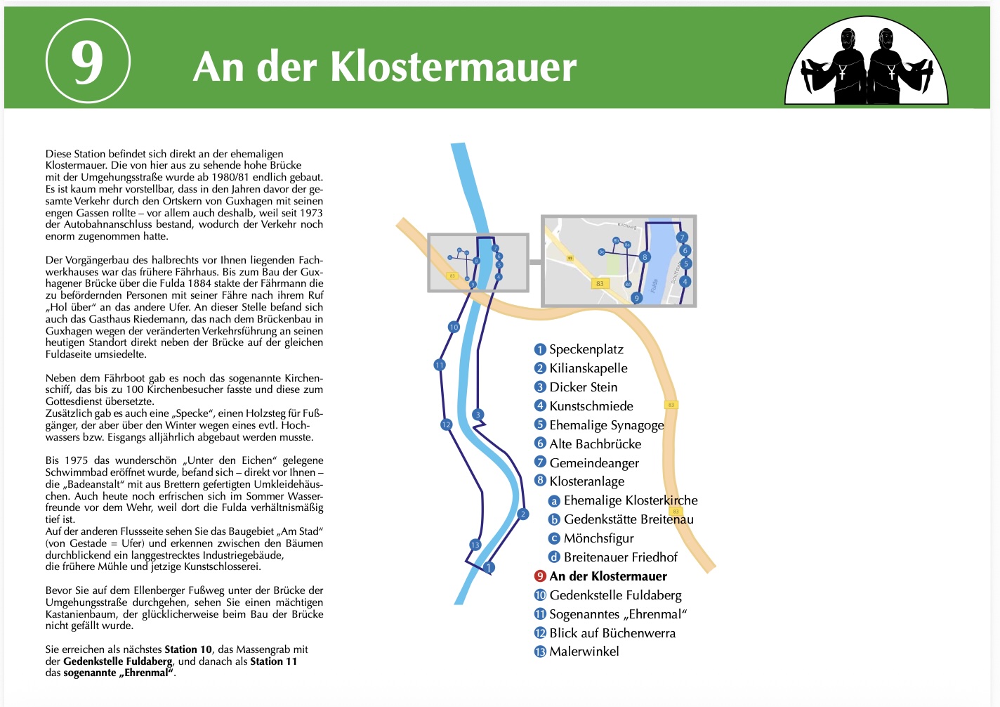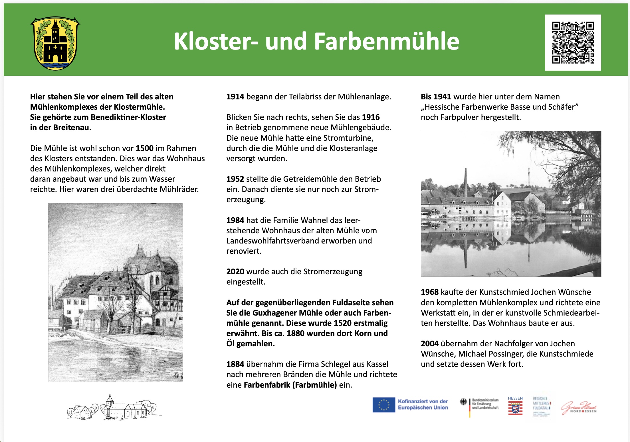 Die Gemeinde Guxhagen hat im Gemeindegebiet Geschichtliche Informationstafeln aufgestellt um die Geschichte, Traditionen, Brauchtum oder alte Handwerkskunst mit Foto und Beschreibung darzustellen. Sie sollen Regionalgeschichte, Hintergründe und Bedeutung von Orten verständlich erläutern, lokale Identität stärken und den Tourismus fördern.