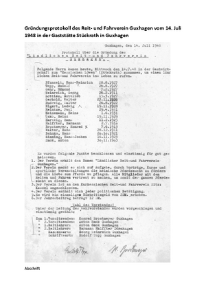 Berichte und Protokolle zum Teil aus Festzeitschrift 40 und 50 Jahre Reit und Fahrverein