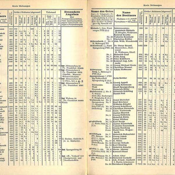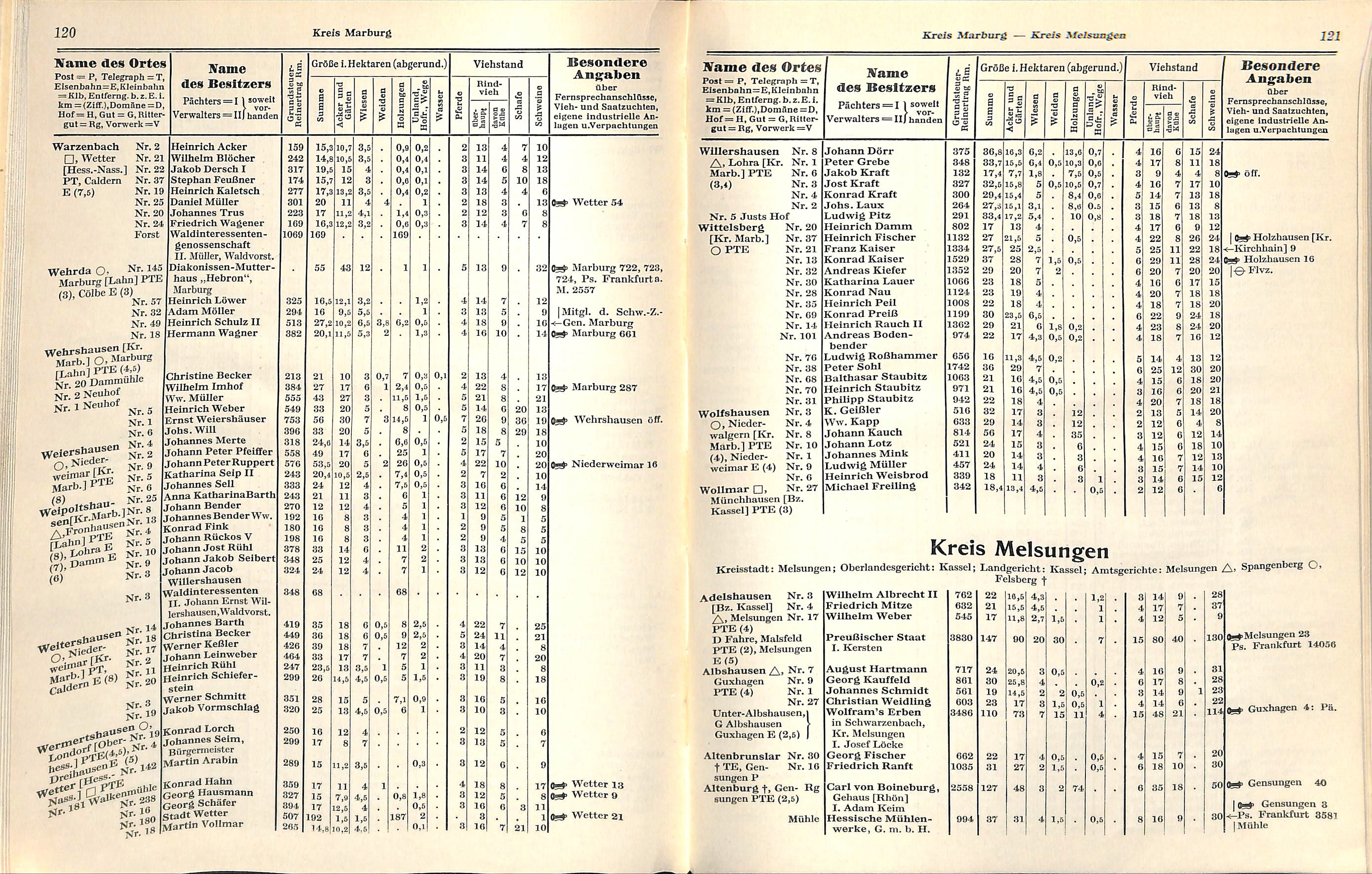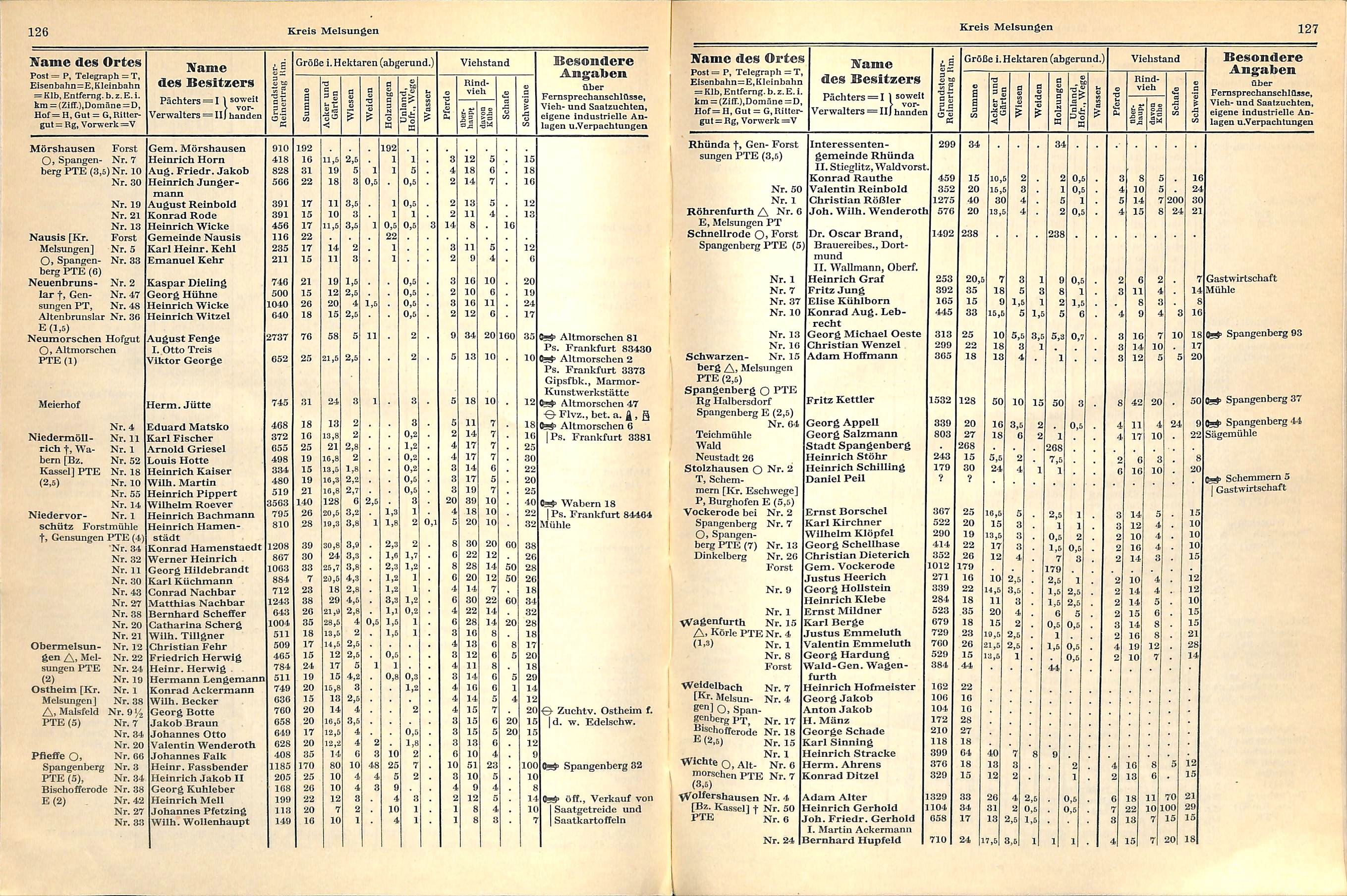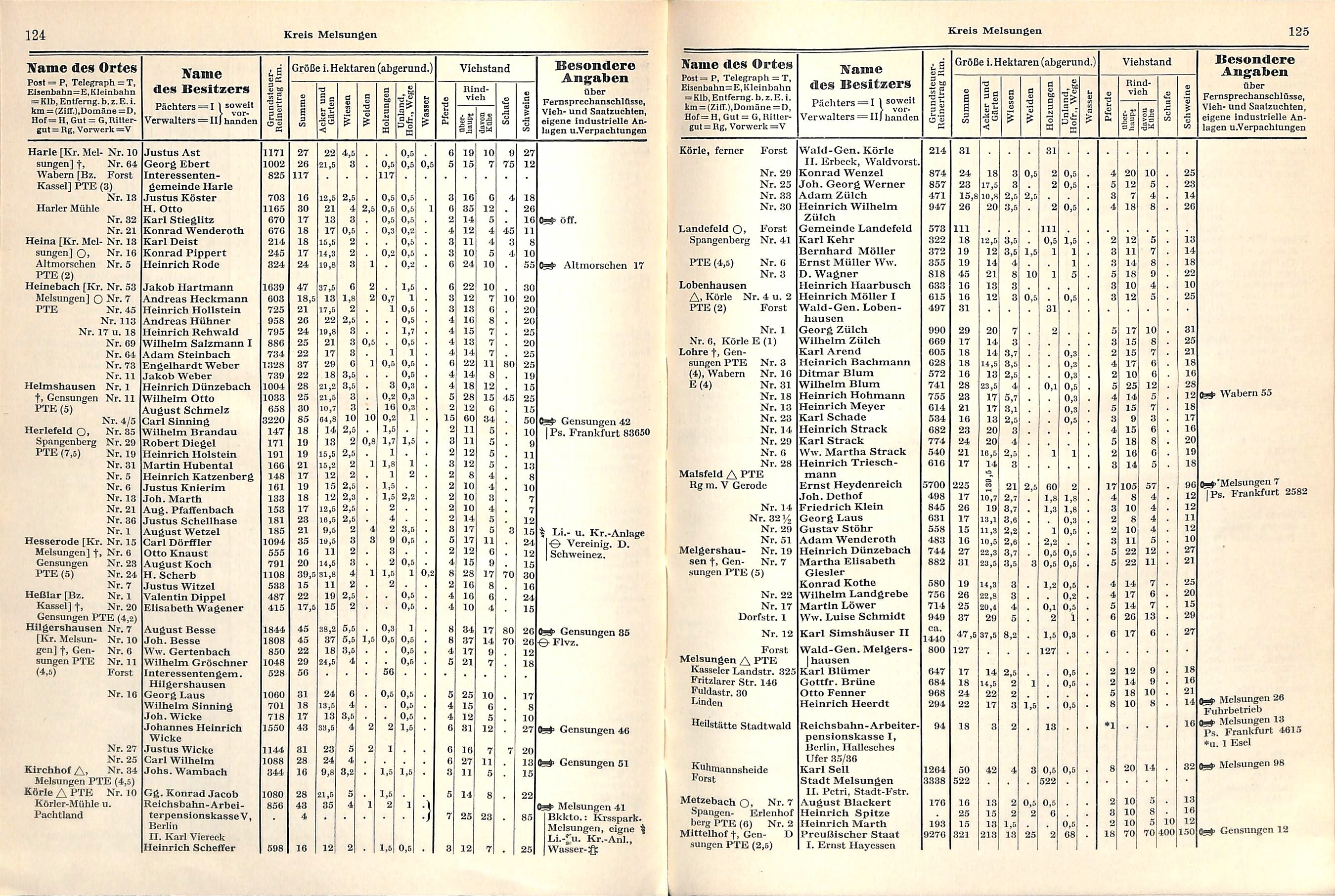 In den Niekammer's Landwirschaflichen Güter-Adressbüchern wurde jedes Jahr für ganz Deutschland alle Kennzahlen für alle grössern Höfe aufgeführt. Ortsname, Hausnummer, Name des Besitzers, Grundsteuer Betrag, größe des Hof in Hektar,und Viehbestand