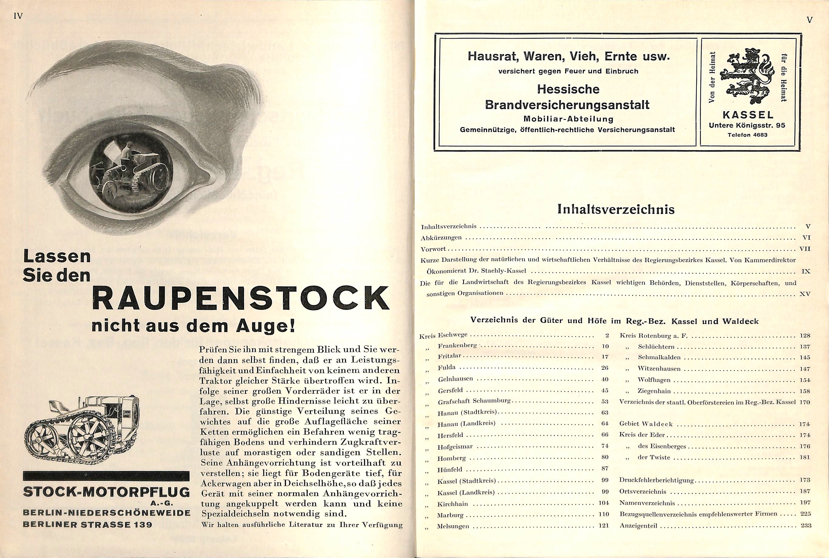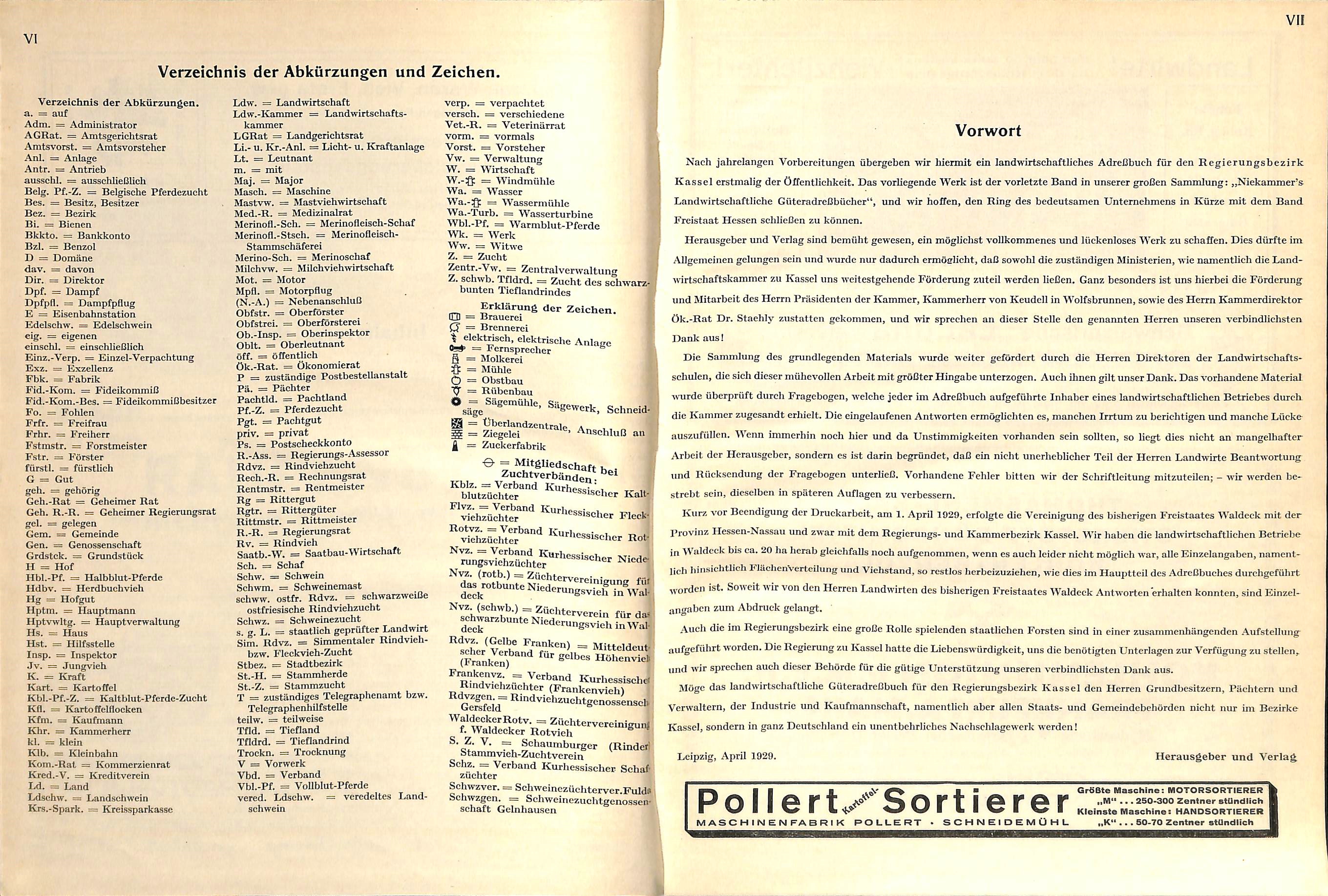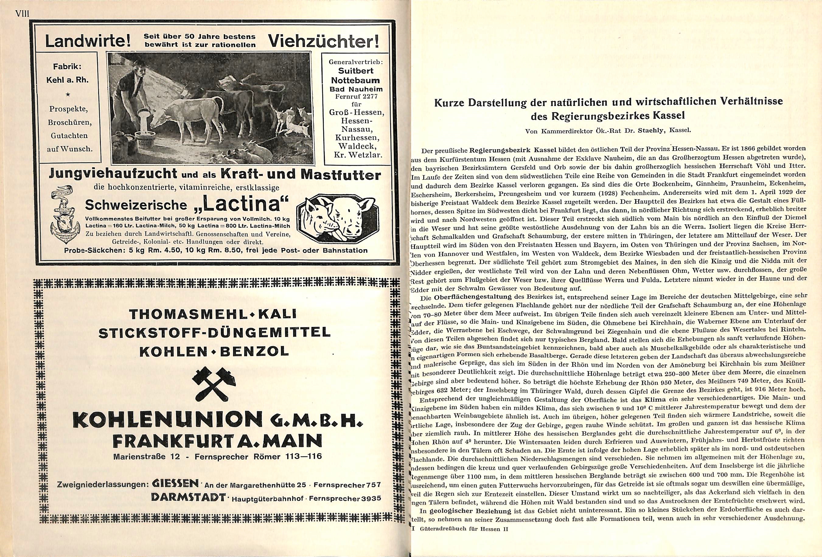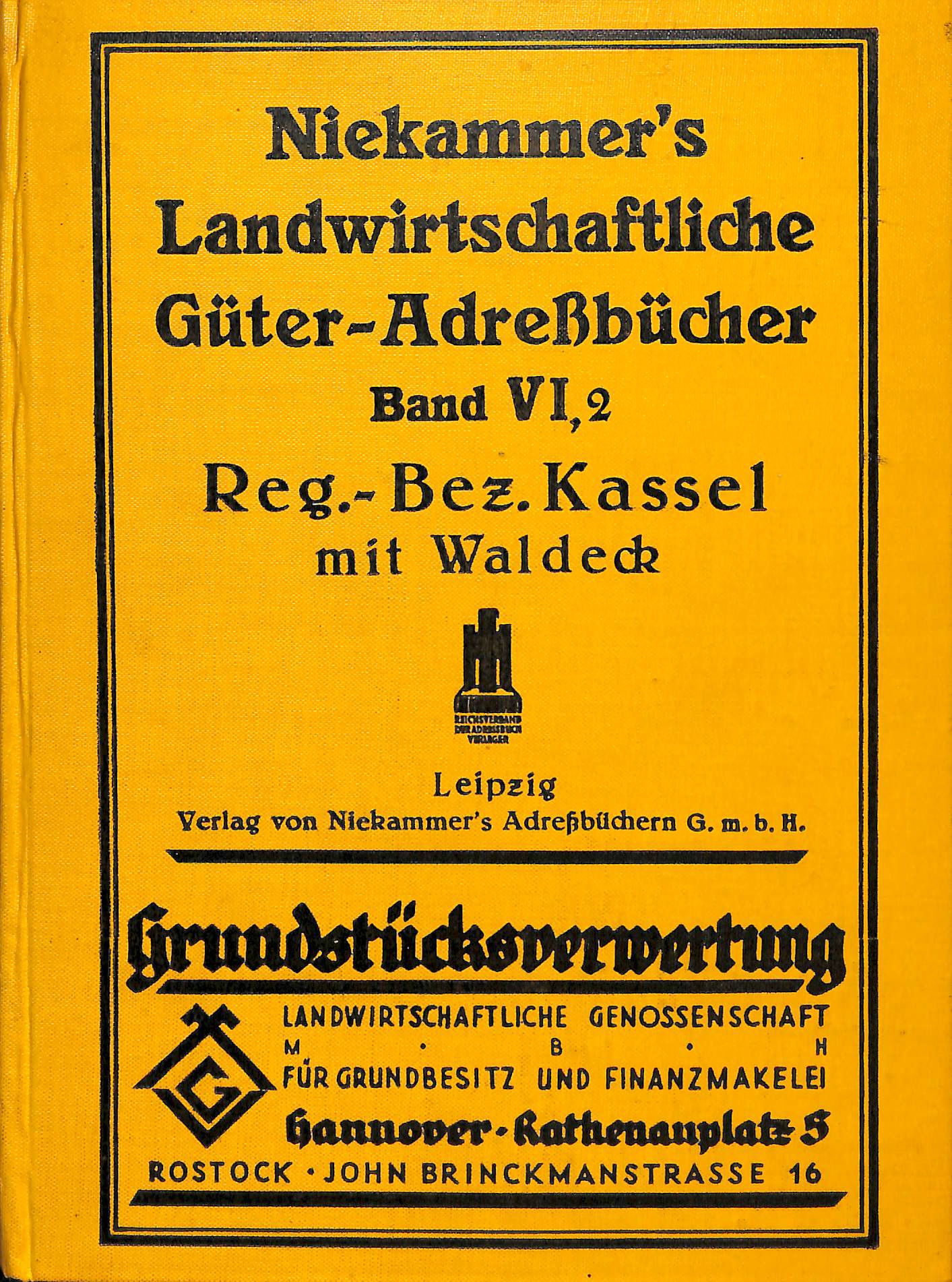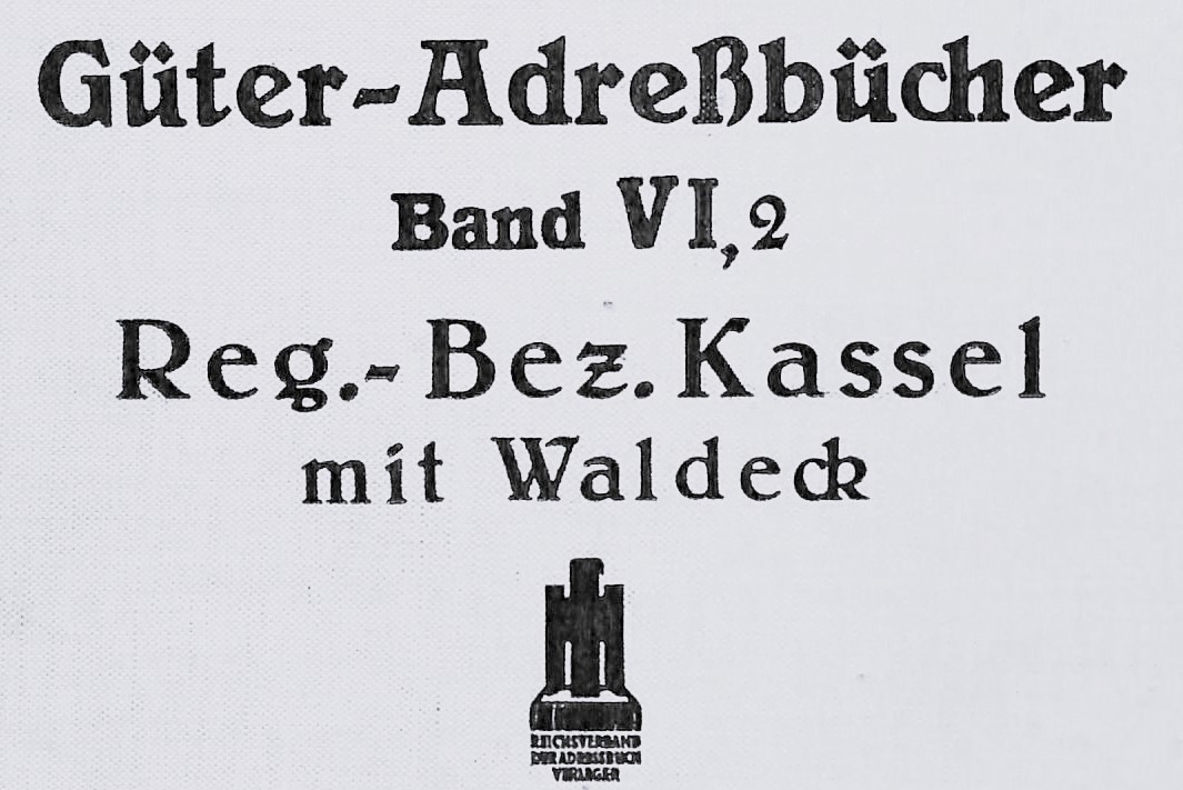 Auszug aus dem Landwirtschaftlichen Güter-Adressbuch Reg.- Bez Kassel mit Waldeck 1929