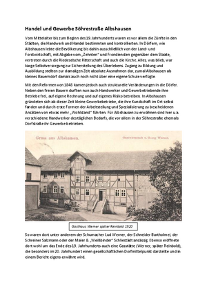 Es gab dort eine Schmiede, einen Stellmacher, einen Maler, einen Schuhmacher sowie einen Schneider. Das Gasthaus Reinbold war sozialer Mittelpunkt des Dorfes bis zur Schließung im Jahr 1999.