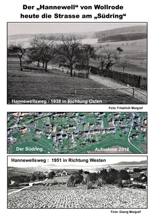 Fotos des "Hannewells" 1938 und 1951 ; heute ist das der "Südring" in Wollrode