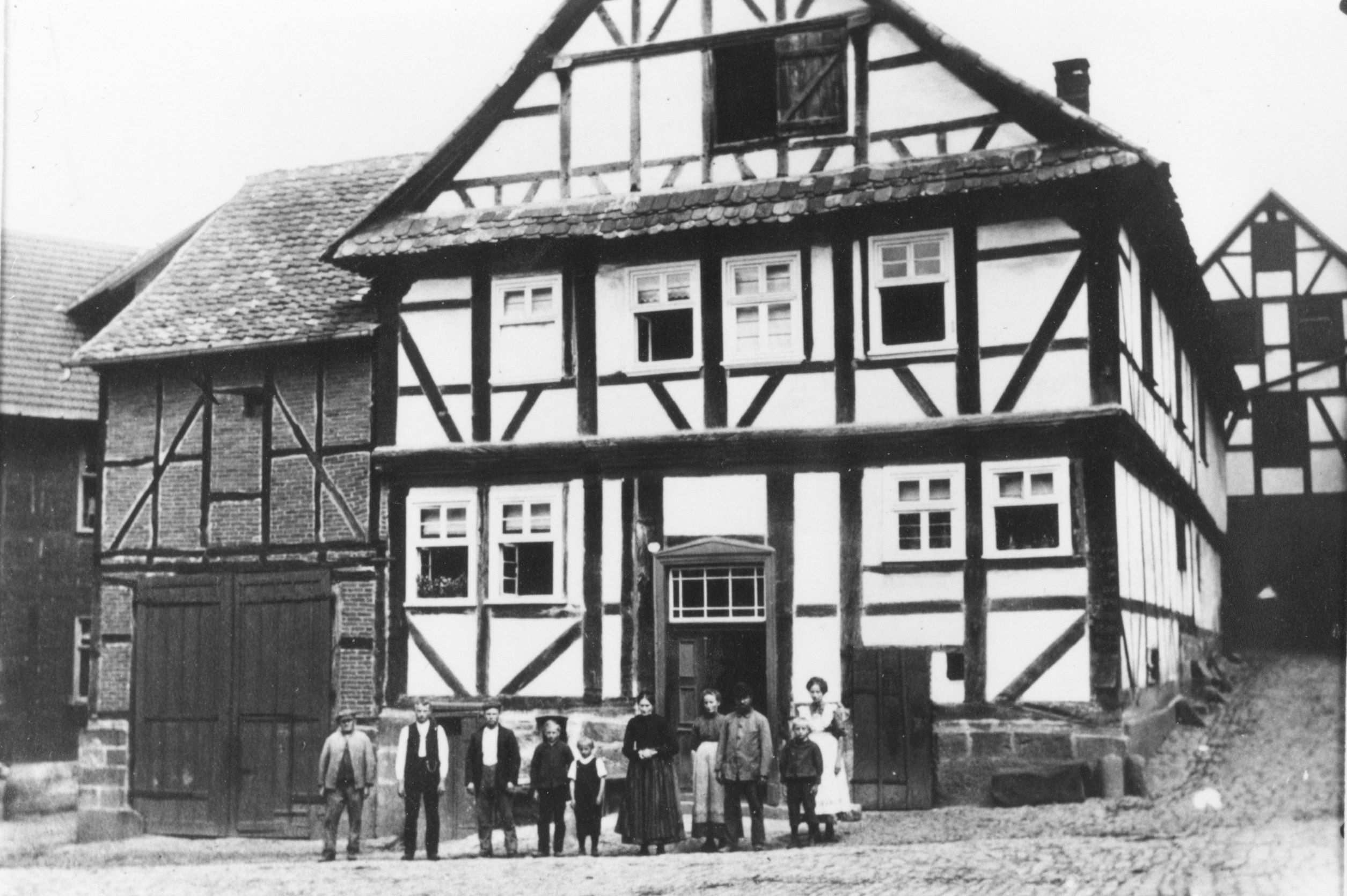 Bild vom Haus der Familie Vogelsberg (Monk) 1910. Das Haus hatte zu der Zeit die Hausnummer 79 Guxhagen, später dann Schulstrasse heute Poststasse 6