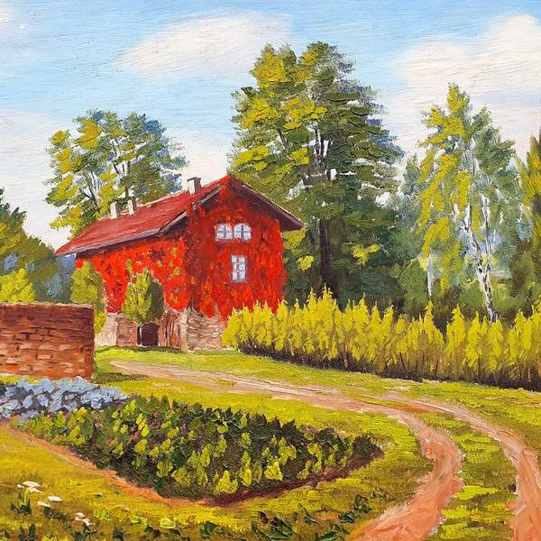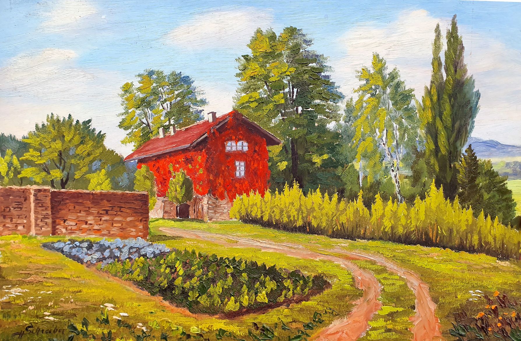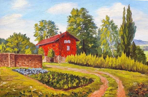 Gemälde vom Huberts-Haus an der Autobahn nach Ellenberg