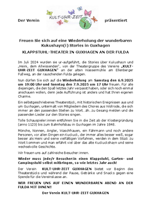 Klappstuhltheater am 6. und 7.09.2025 vor der Klostermühle Guxhagen