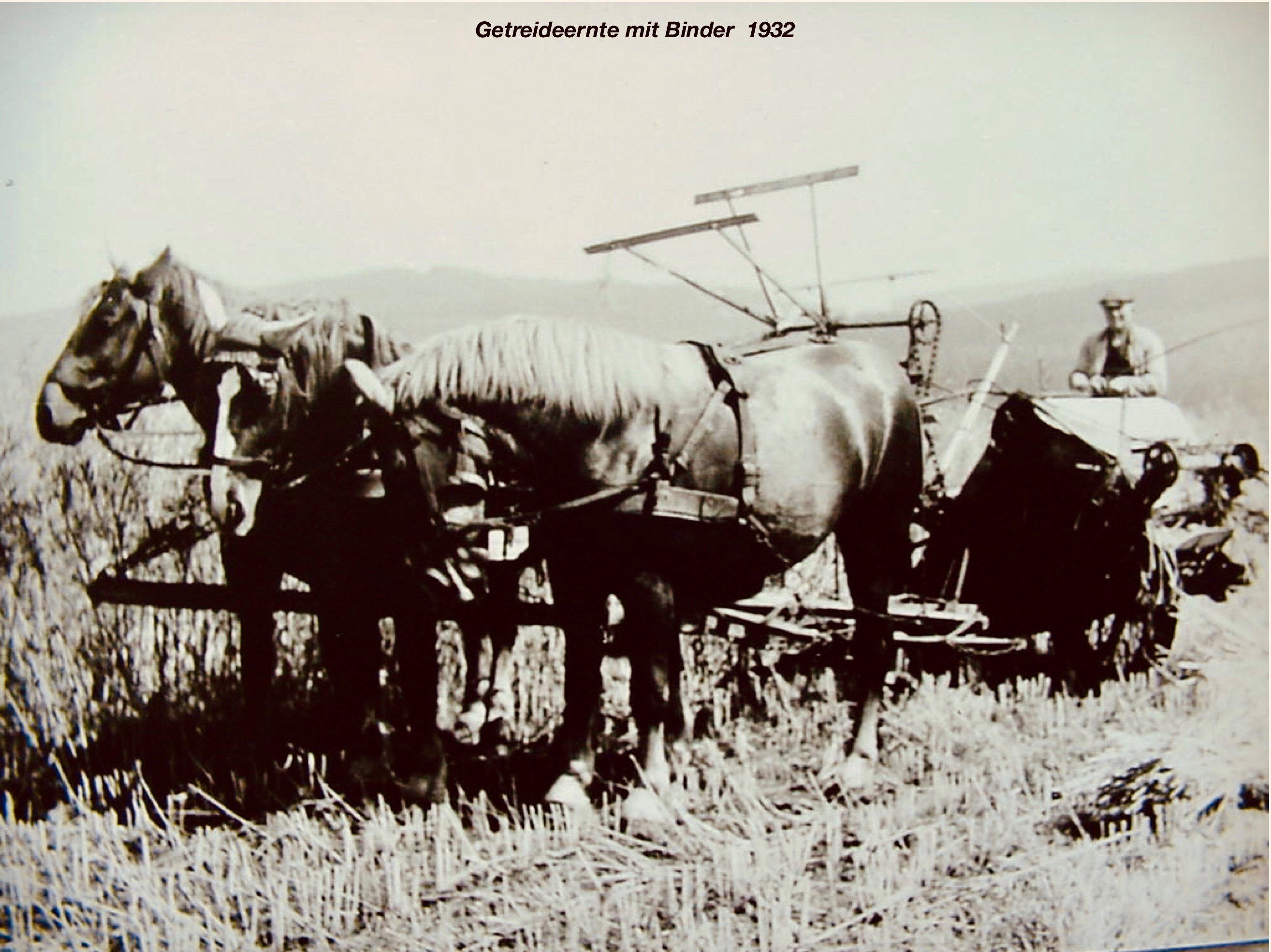 Entwicklung der Mähmaschine / Mähbinder zunehmend mechanisiert.