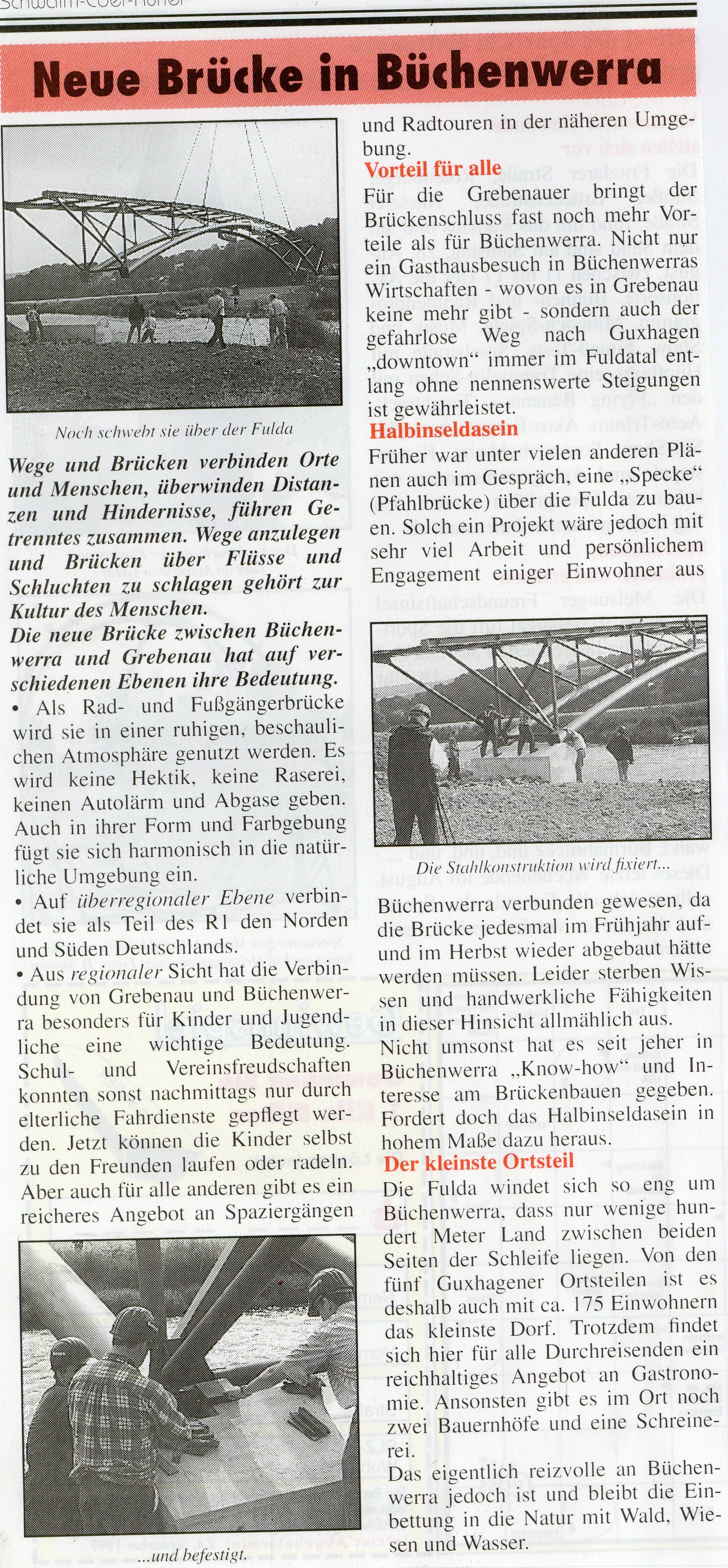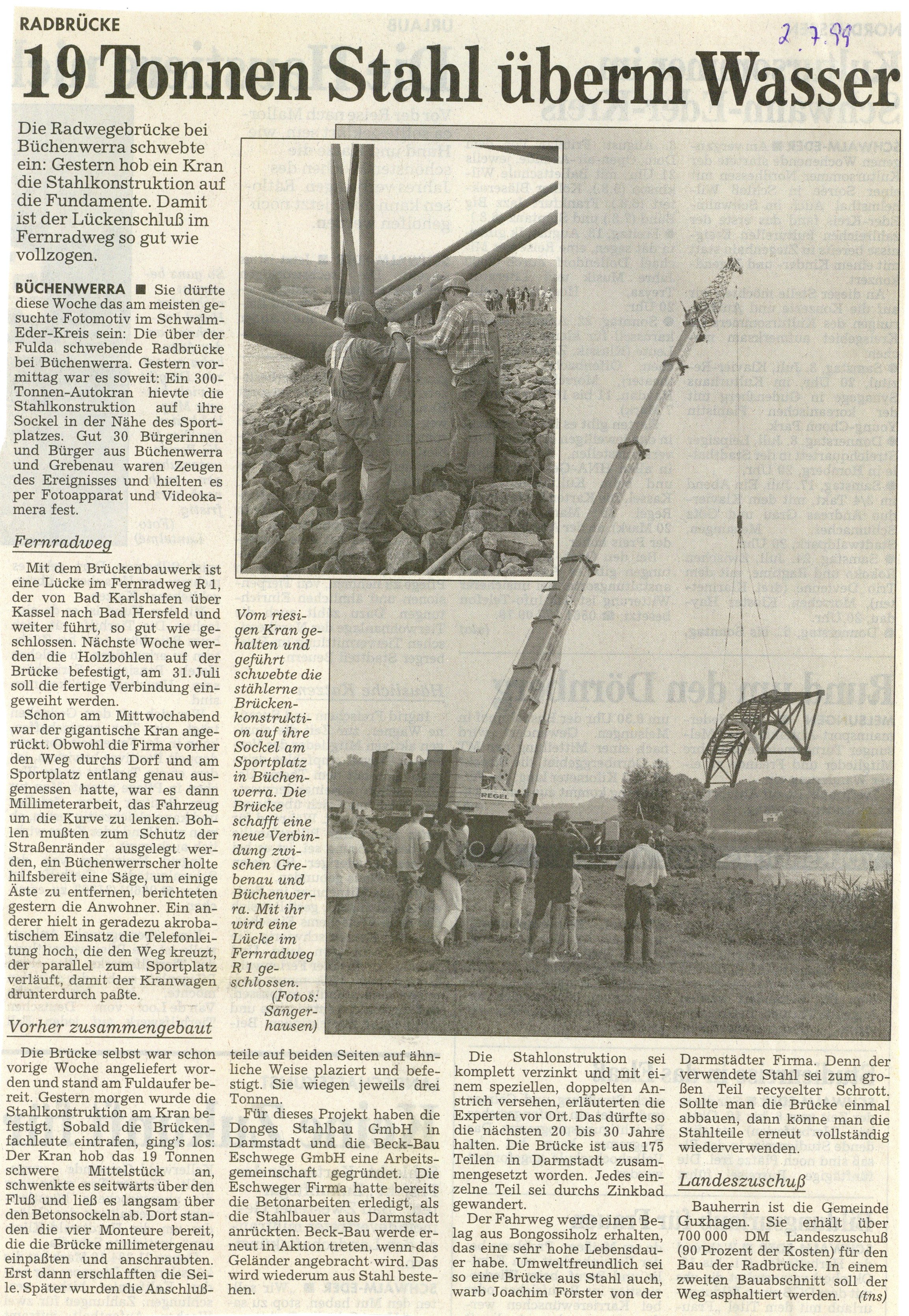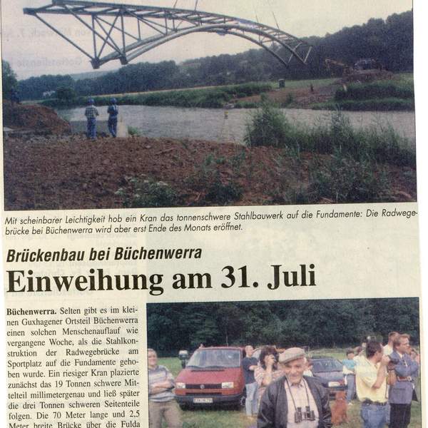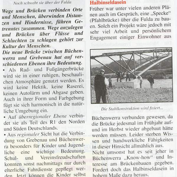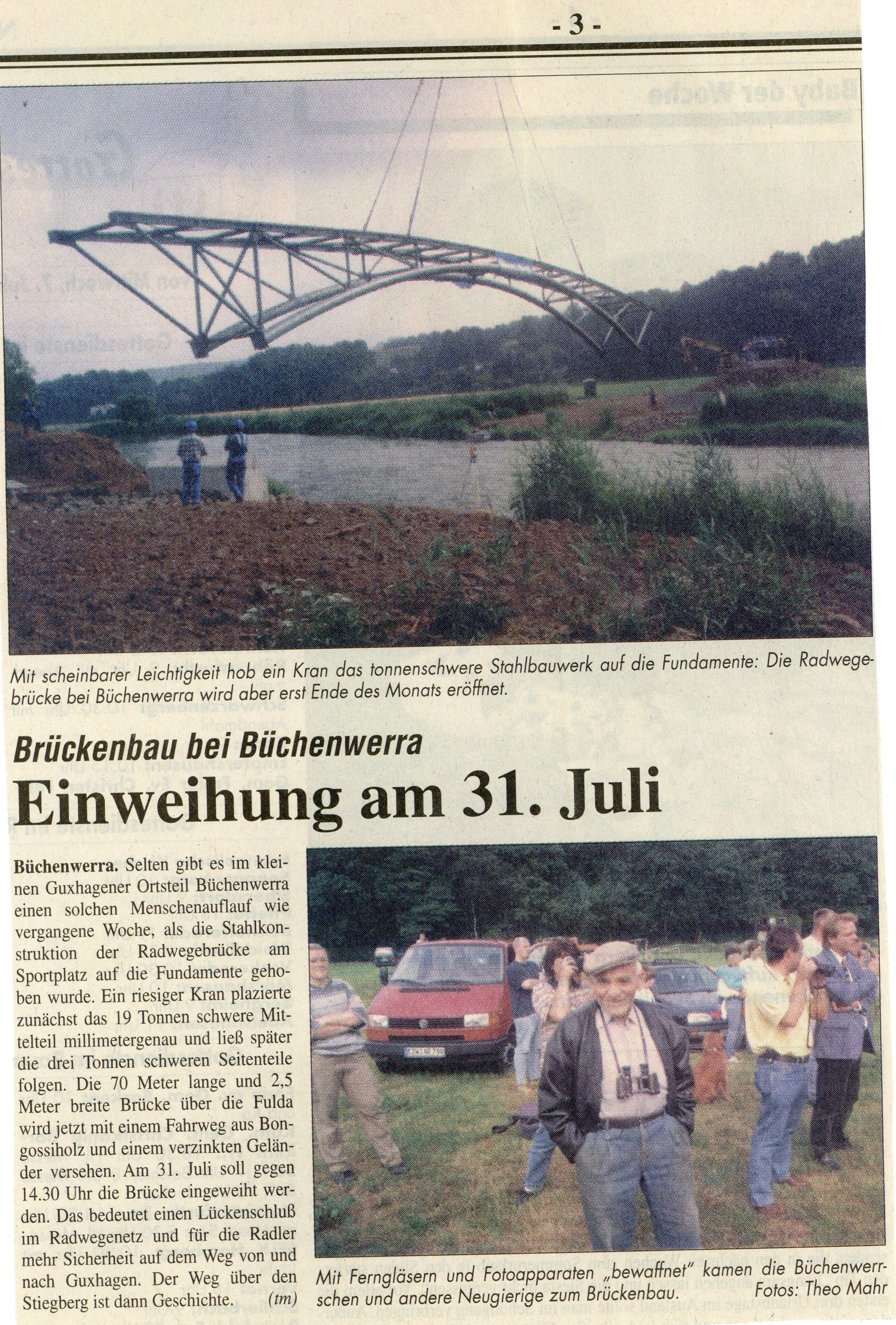Radbrückenbau R1 im Jahr 1999 über die Fulda von Grebenau nach Büchenwerra