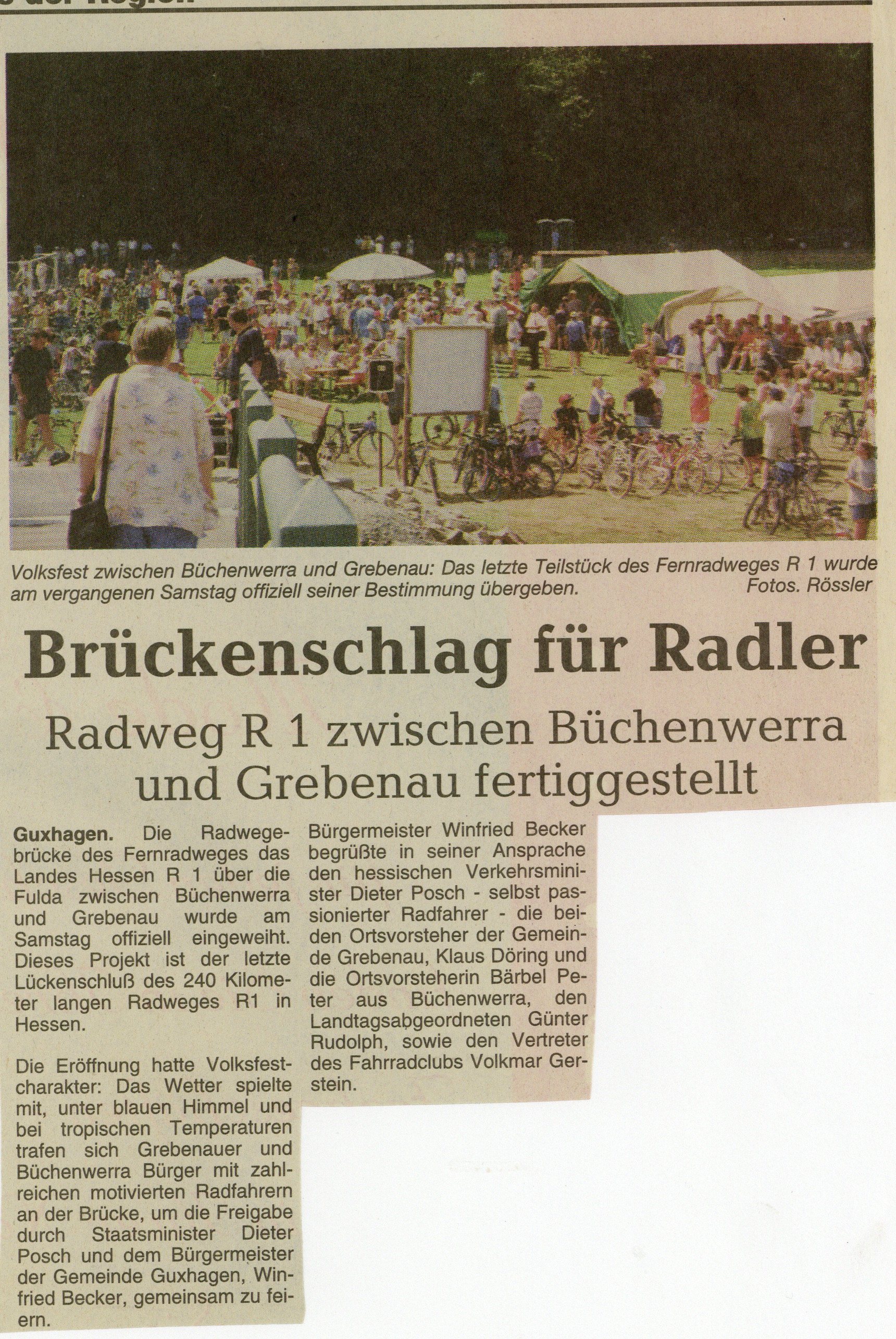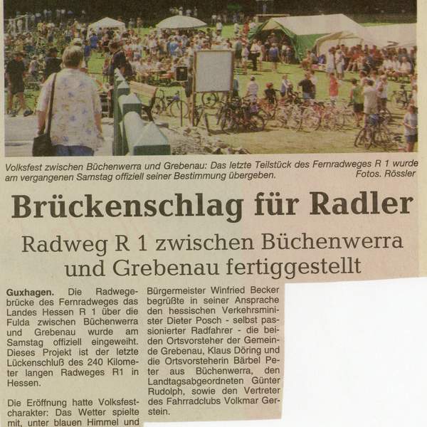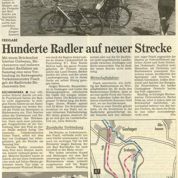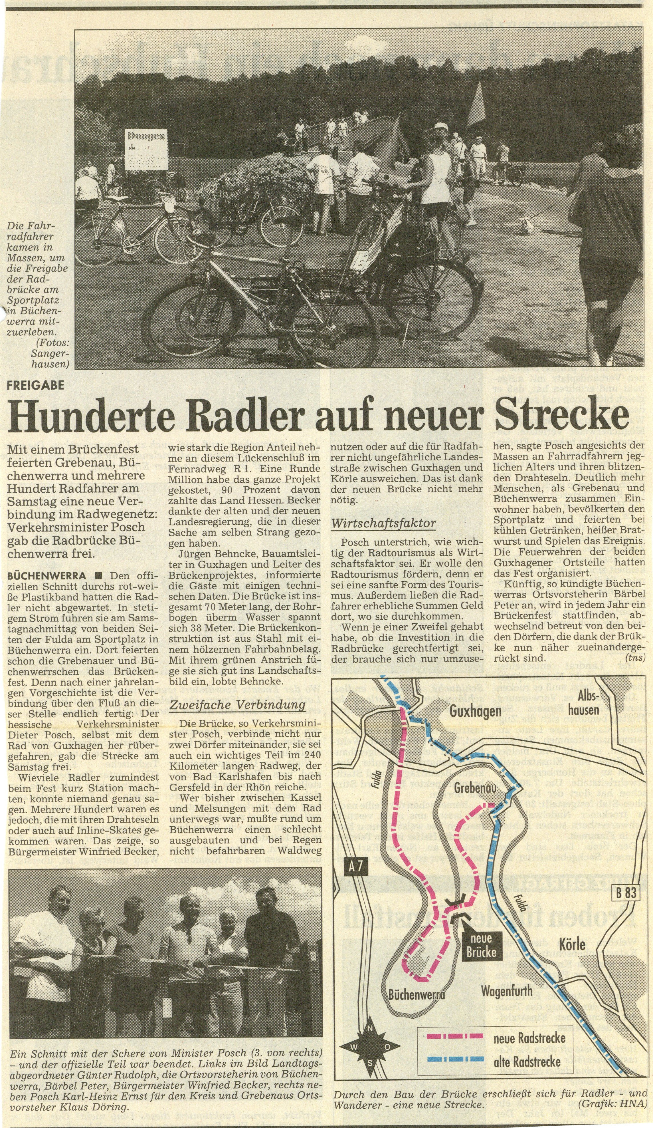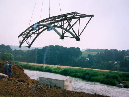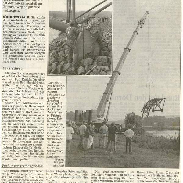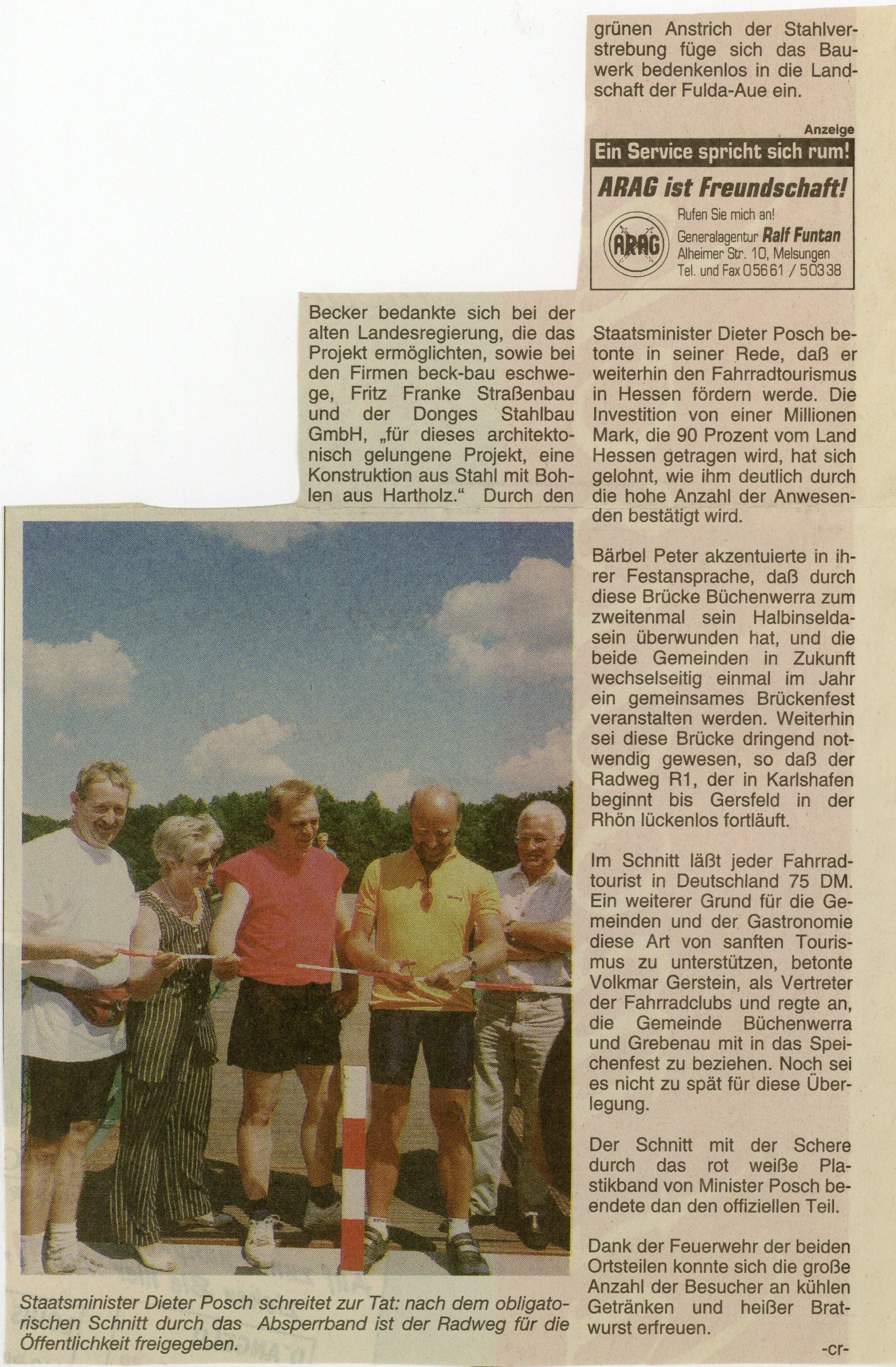 Radbrückenbau R1 im Jahr 1999 über die Fulda von Grebenau nach Büchenwerra