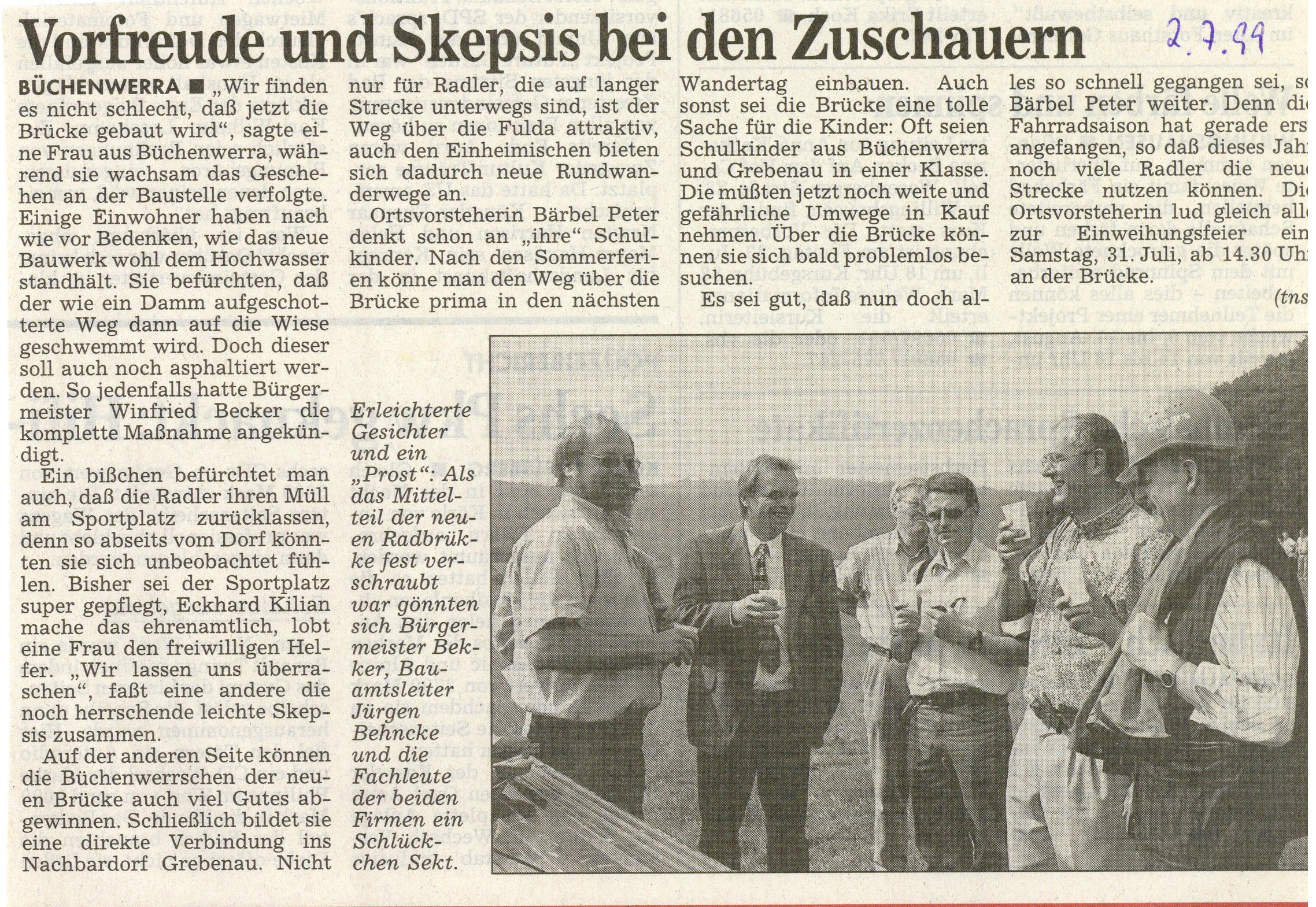 Einweihung war bereits mit einem Brückenfest am 31.Juli 1999