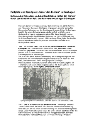 Nutzung des Reitplatzes und des Sportplatzes „Unter den Eichen“ durch den Ländlichen Reit- und Fahrverein Guxhagen-Dörnhagen der 1948 in Guxhagen gegründet wurde.