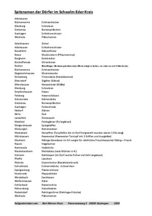 Spitznamen der Dörfer des Schwalm-Eder-Kreis