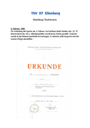 TSV 07 Ellenberg Gründung Tischtennis 1981