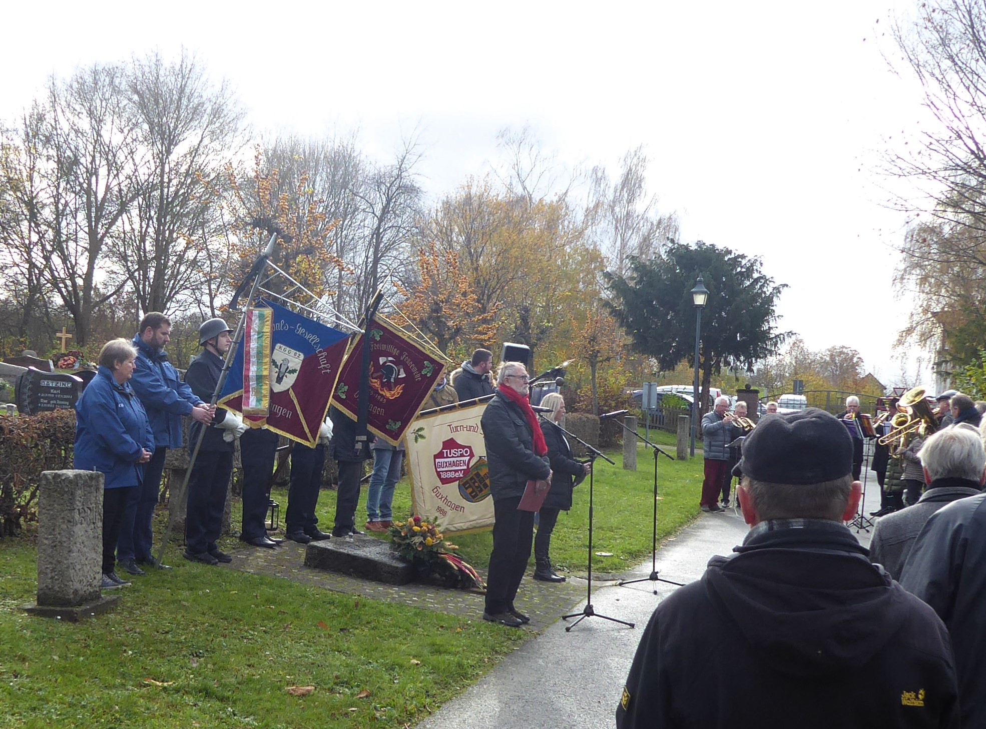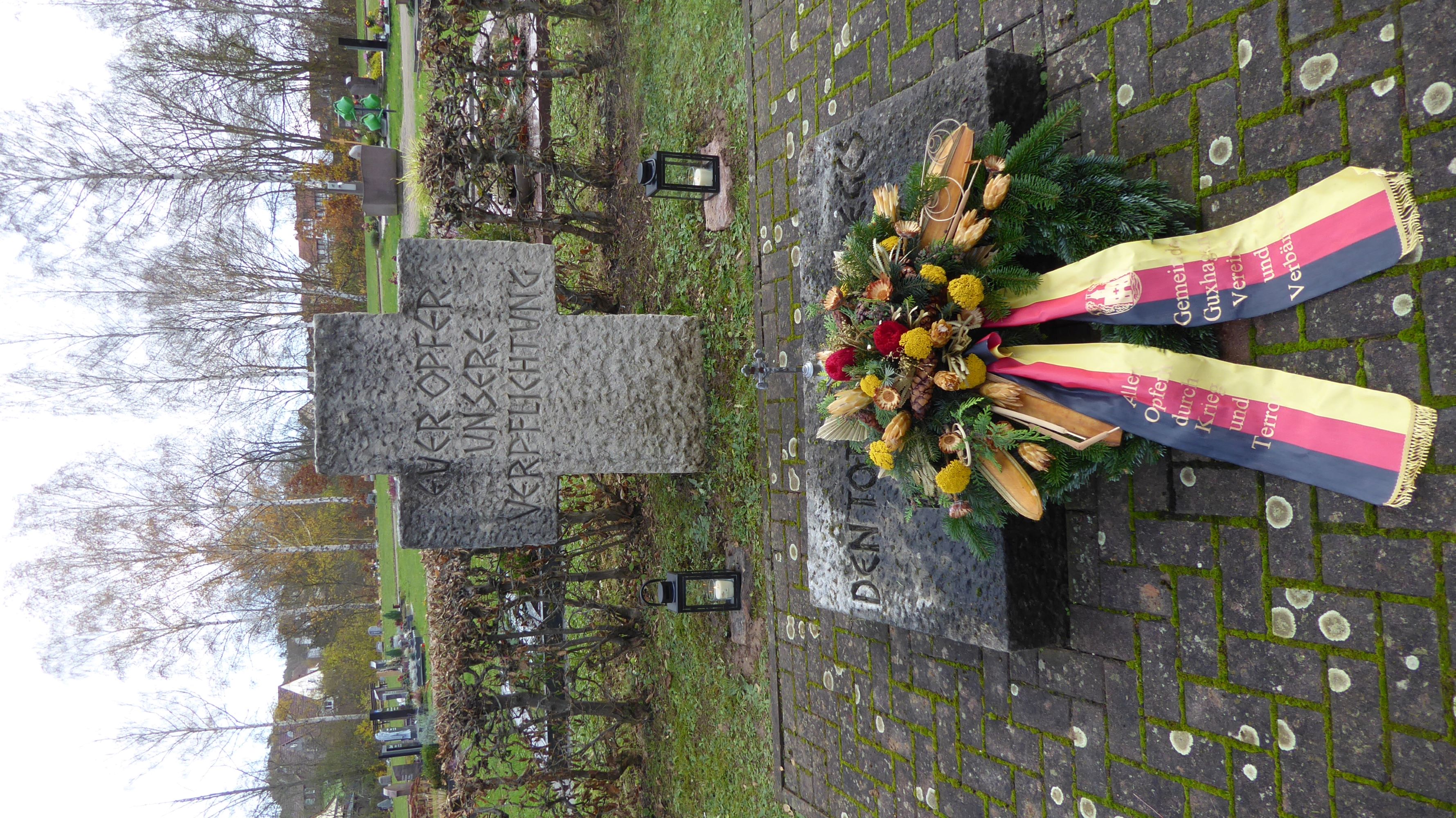 An diesem Sonntag fand erst der evangelische Gottesdienst in der Winterkirche statt und im Anschluß traf man sich am Ehrenmal zum Gedenken der Toten. Bürgermeisterin Susanne Schneider und Ortsvorsteher Konrad Rysiewski haben gemeinsam die Ansprache gehalten. (Anlage)