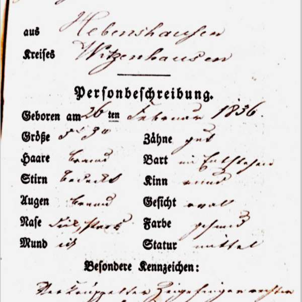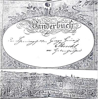 Das Wanderbuch gehörte dem Schreinergesellen Gregor Heinrich Elbrecht aus Guxhagen. Geboren 1836 in Hebenshausen bei Witzenhausen.